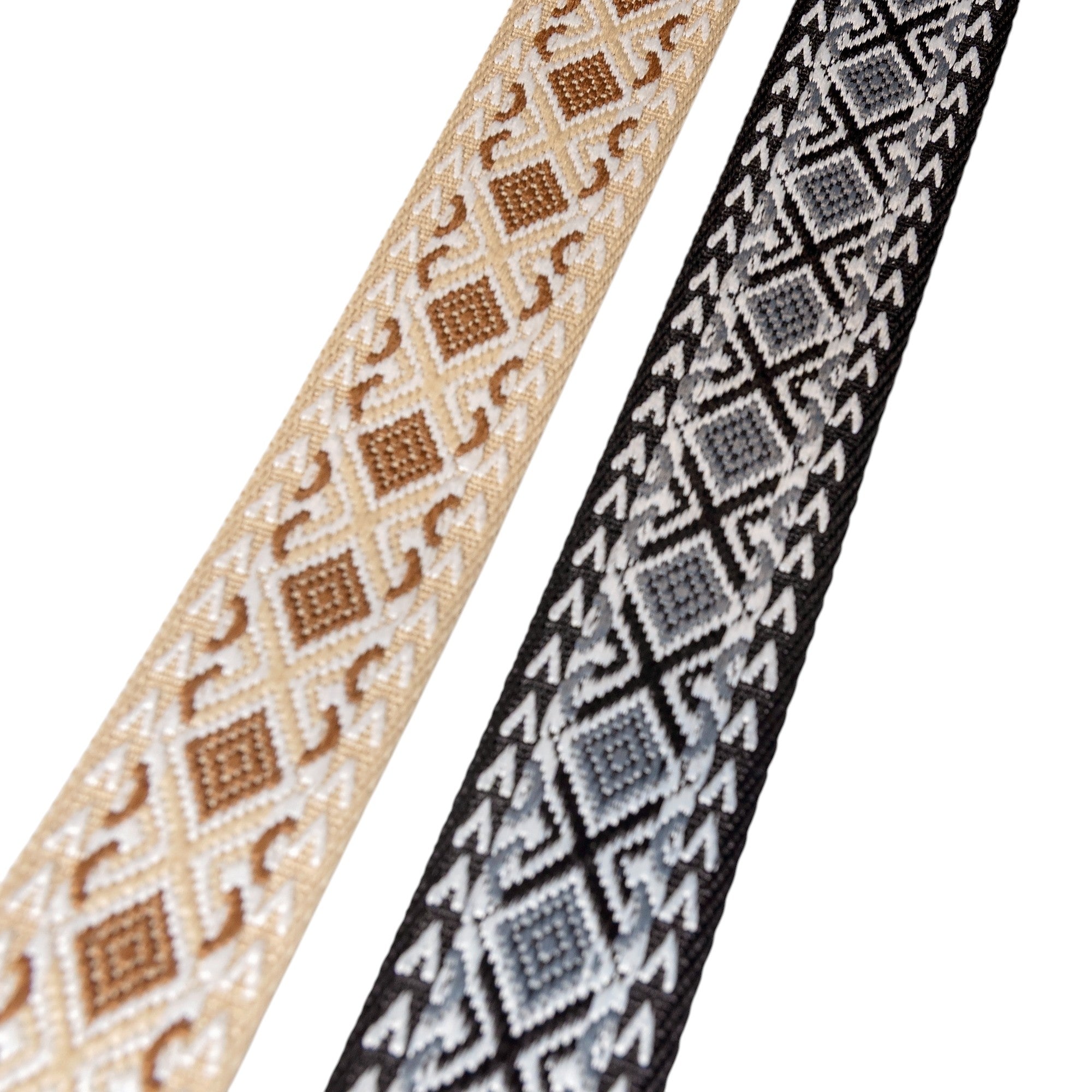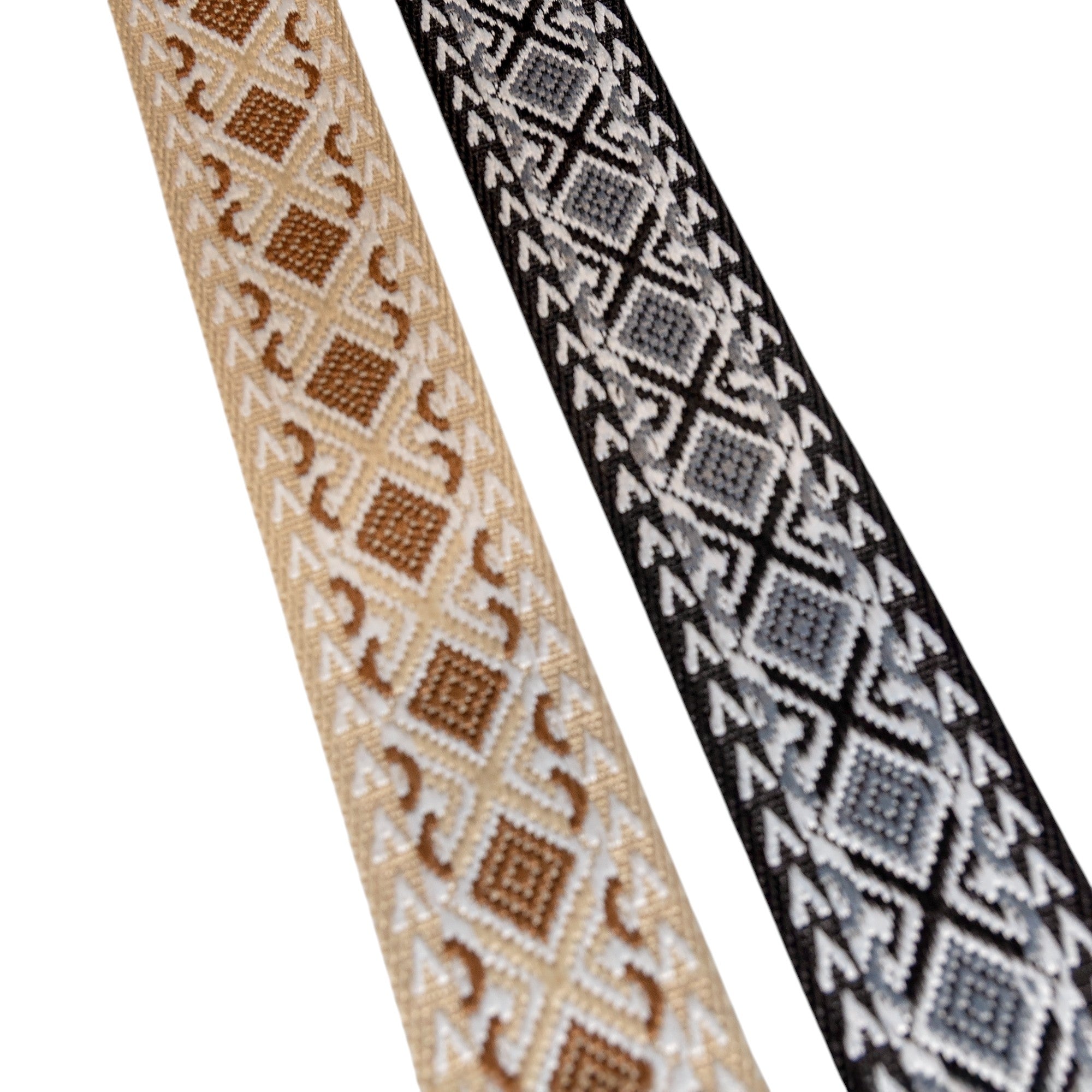 Give your handmade bags a bold, artisan finish with our Mesa Jacquard Webbing. This premium 1 1/2" wide strap features an intricate woven diamond design on the front and a smooth, solid-color back. Made from strong yet flexible polyester, it’s ideal for tote bags, crossbody straps, and backpacks.