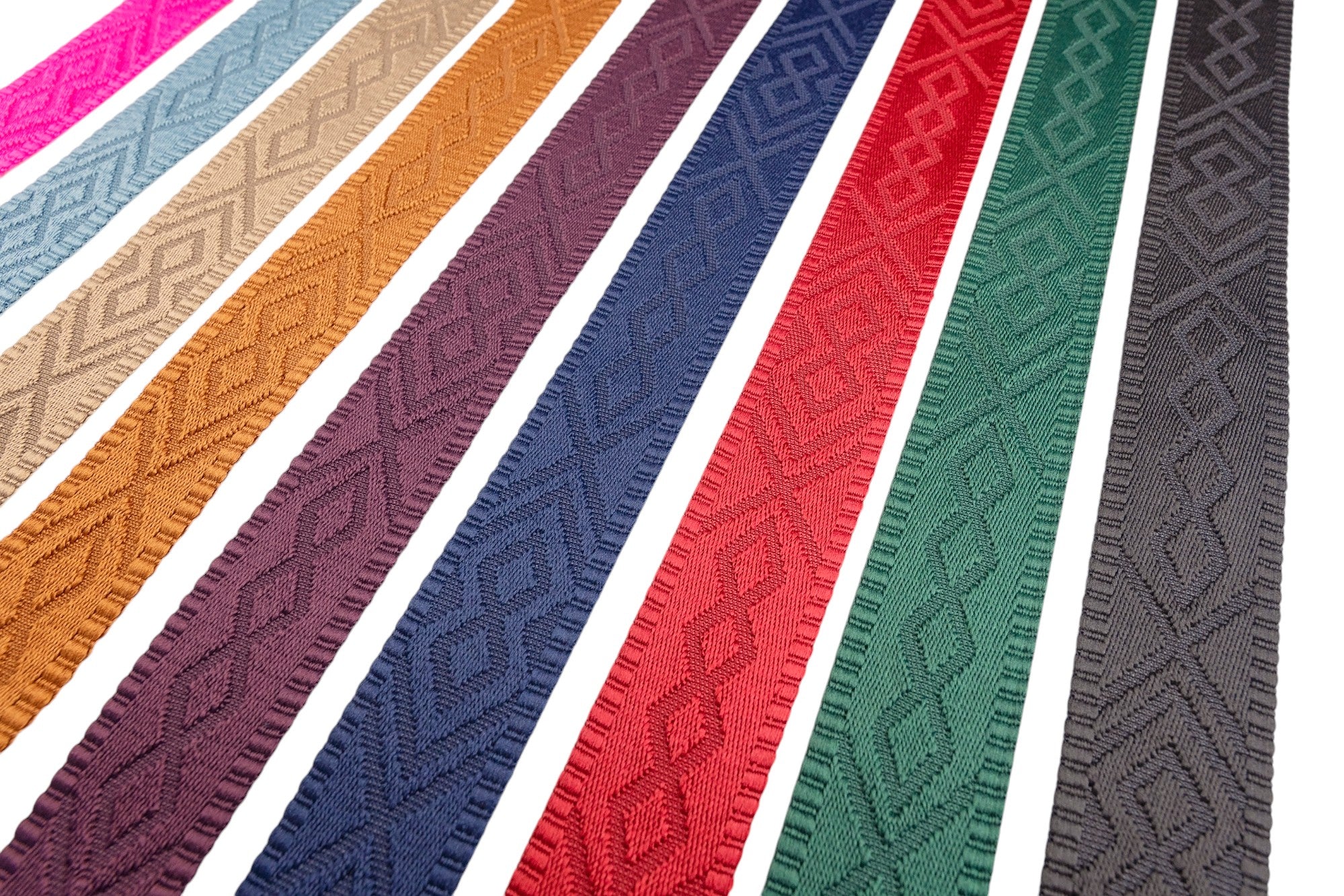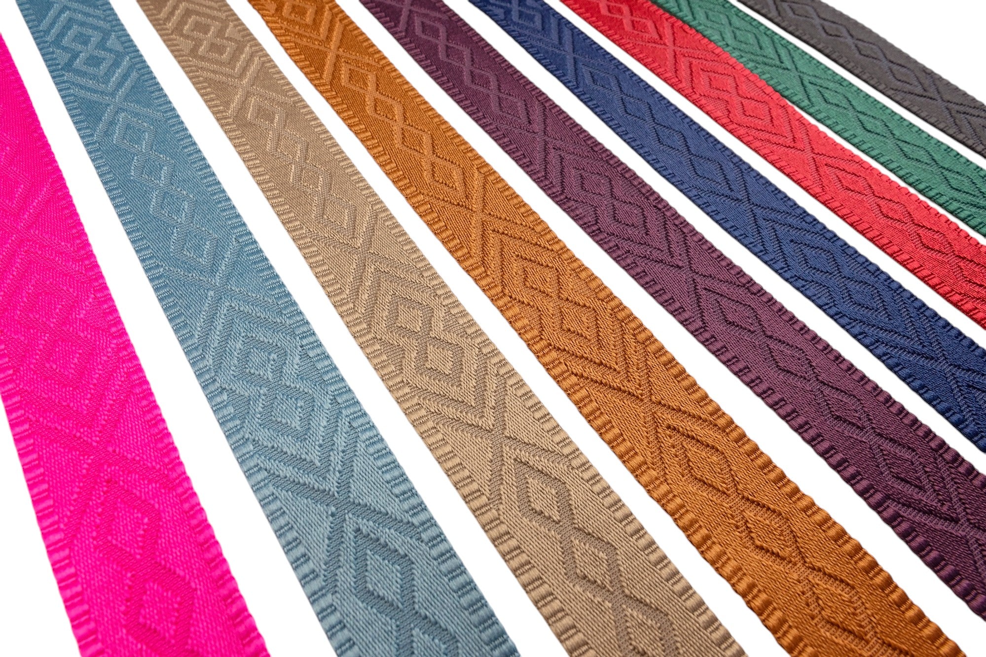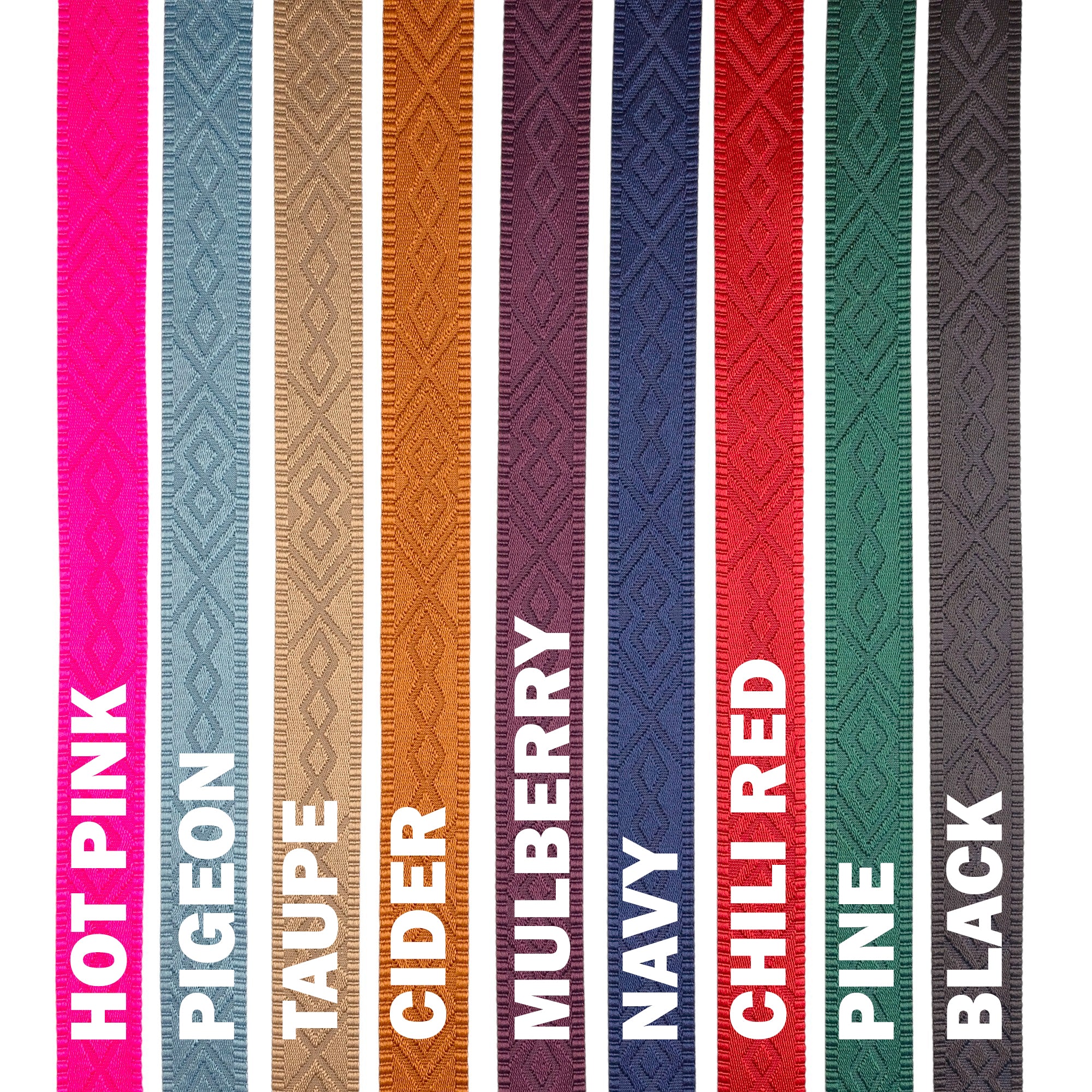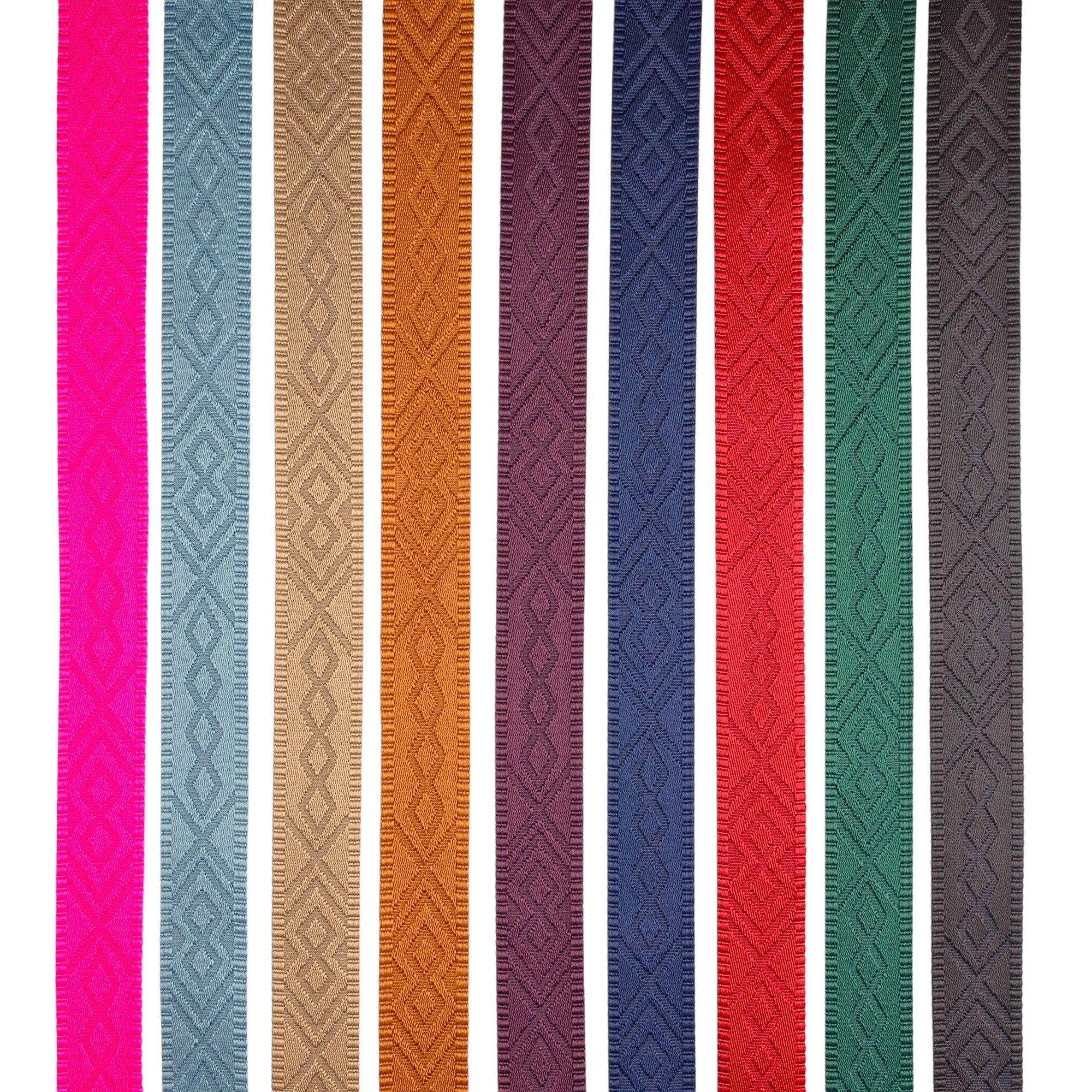 Complete your bag-making projects with our 1 1/2" Polyester Jacquard Sweater Webbing Collection. Available in 9 stunning colors, this webbing is ideal for creating stylish and durable crossbody straps for any bag.