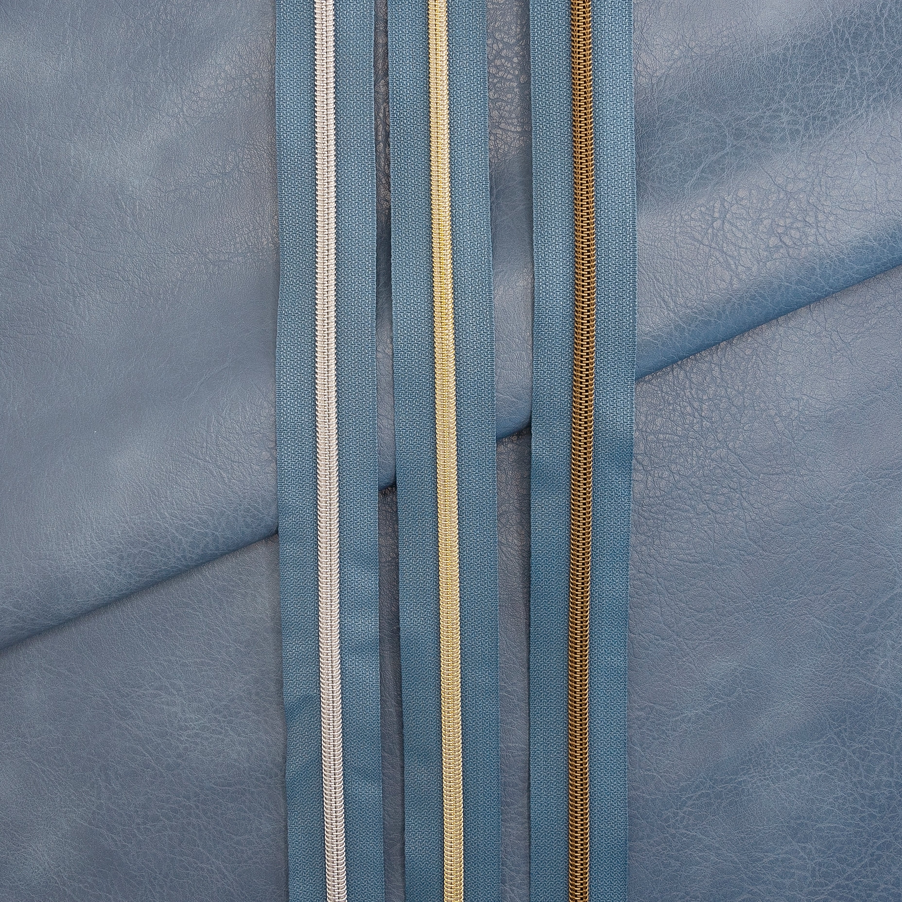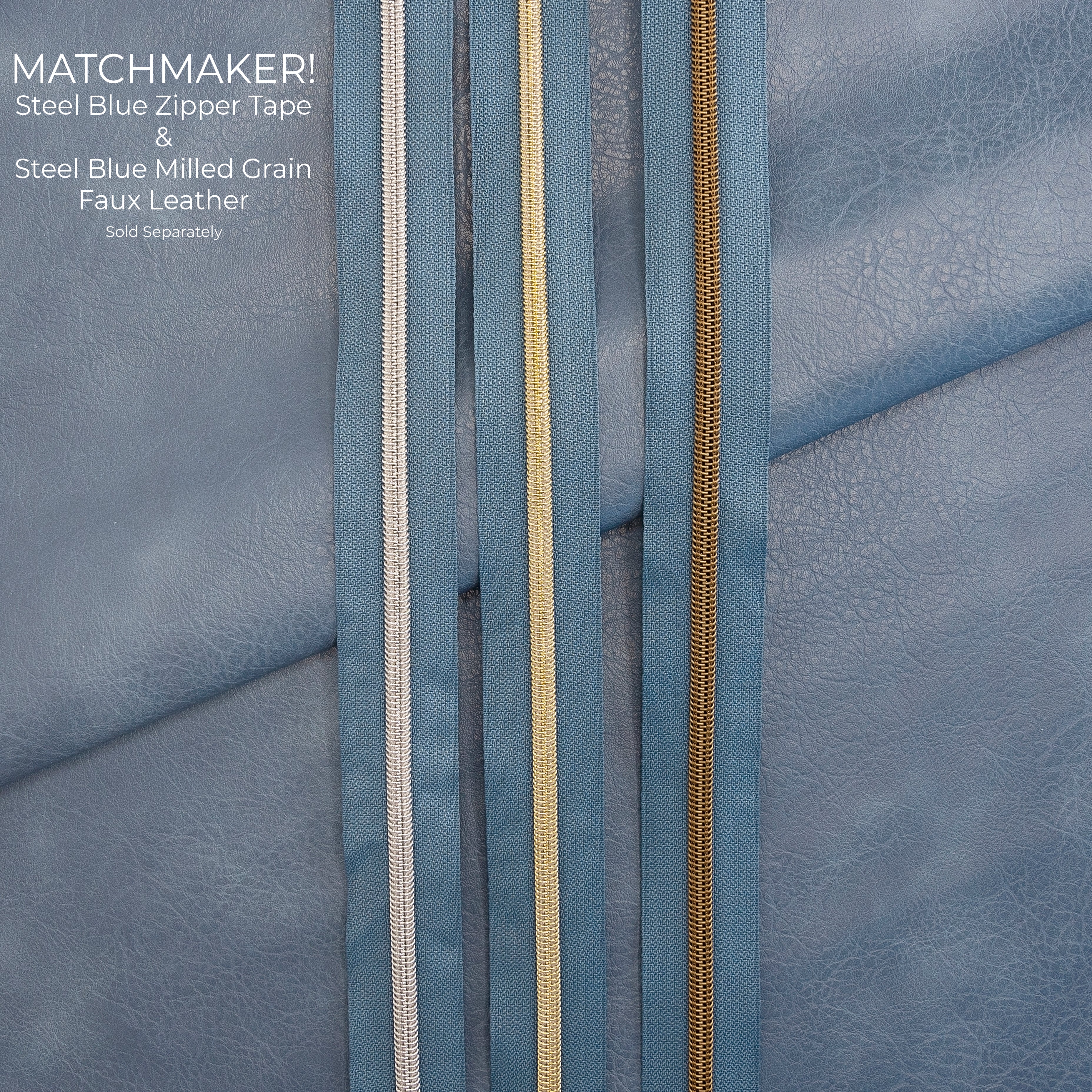 Matches perfectly with our Steel Blue Milled Grain Faux Leather. Order Zipper Pulls and Ends separately.