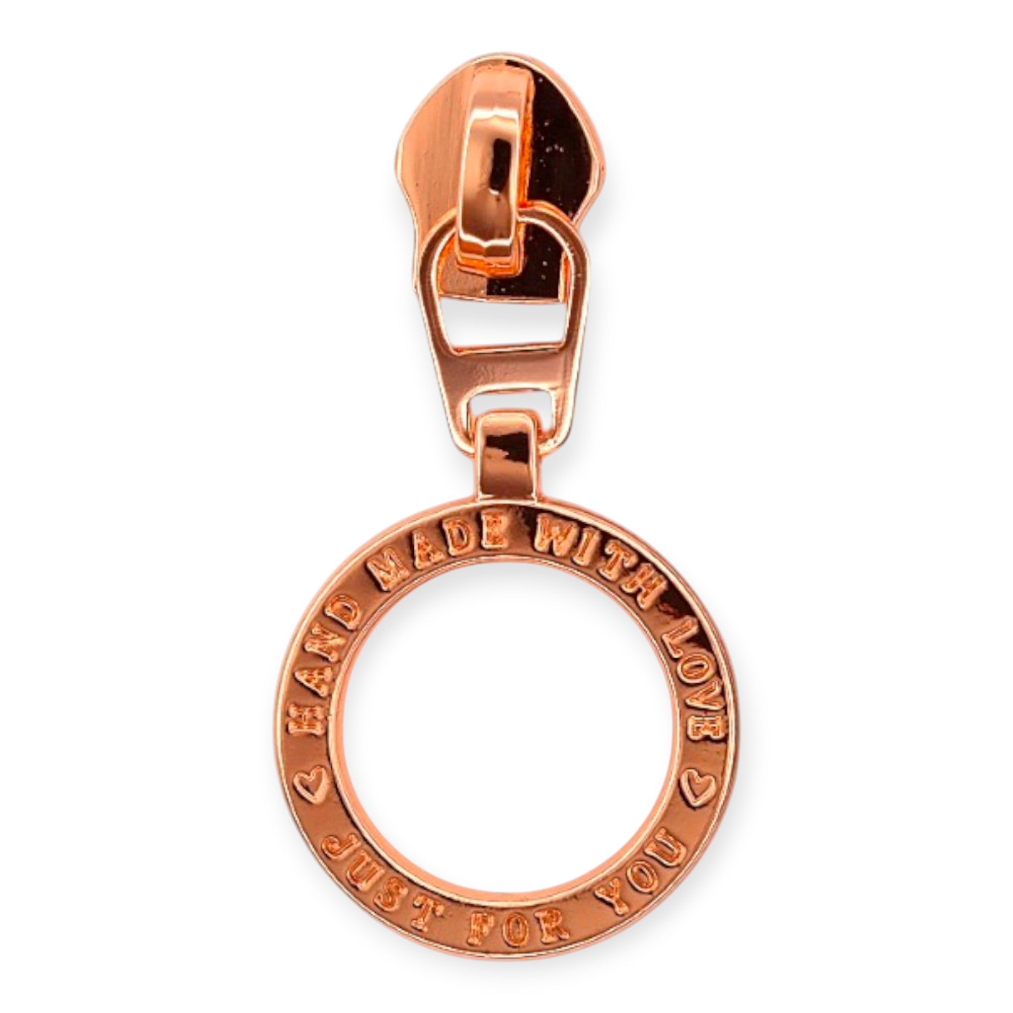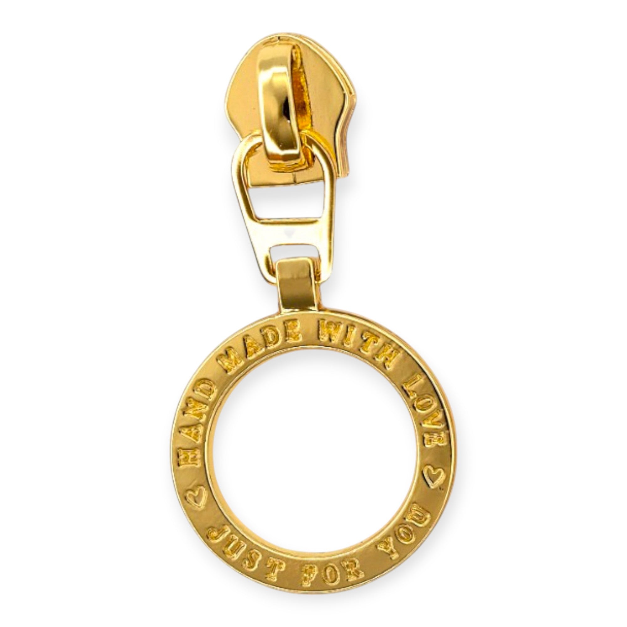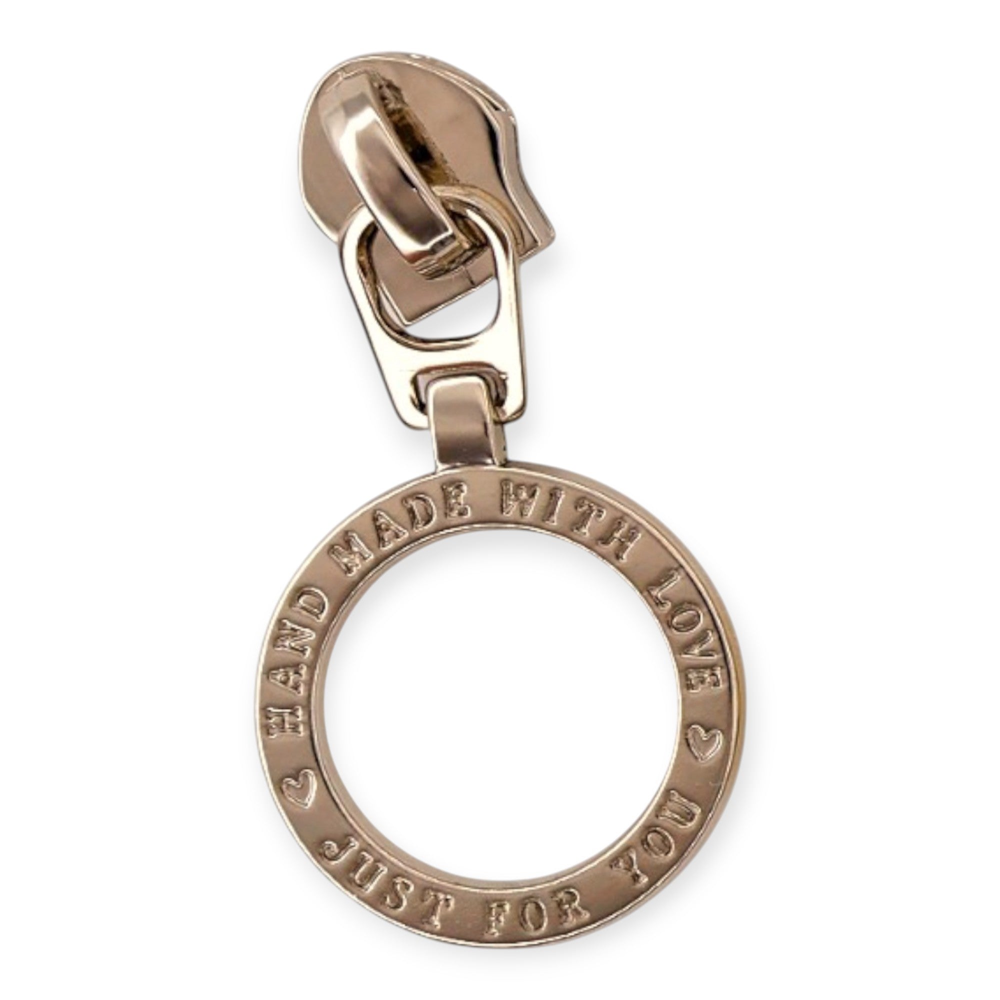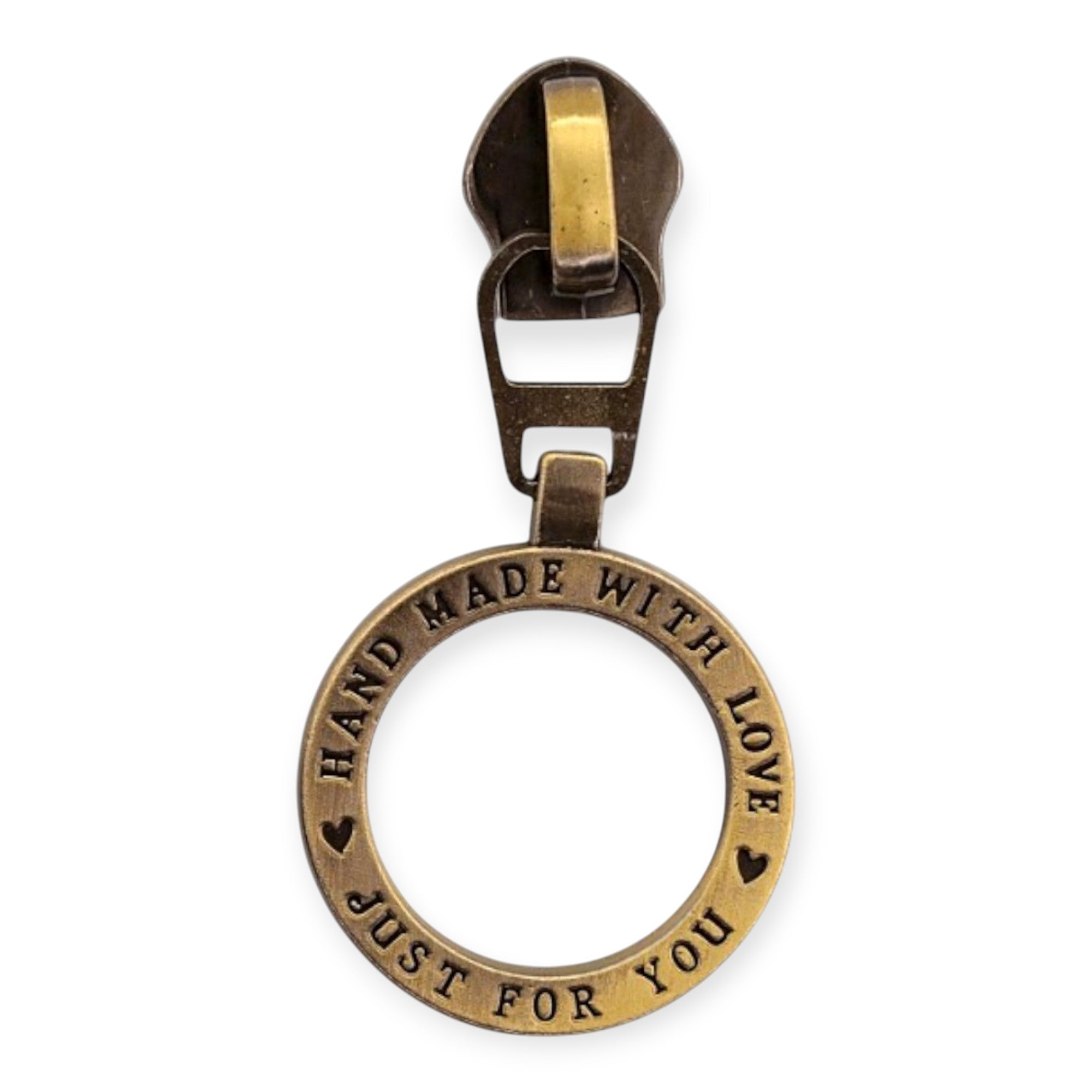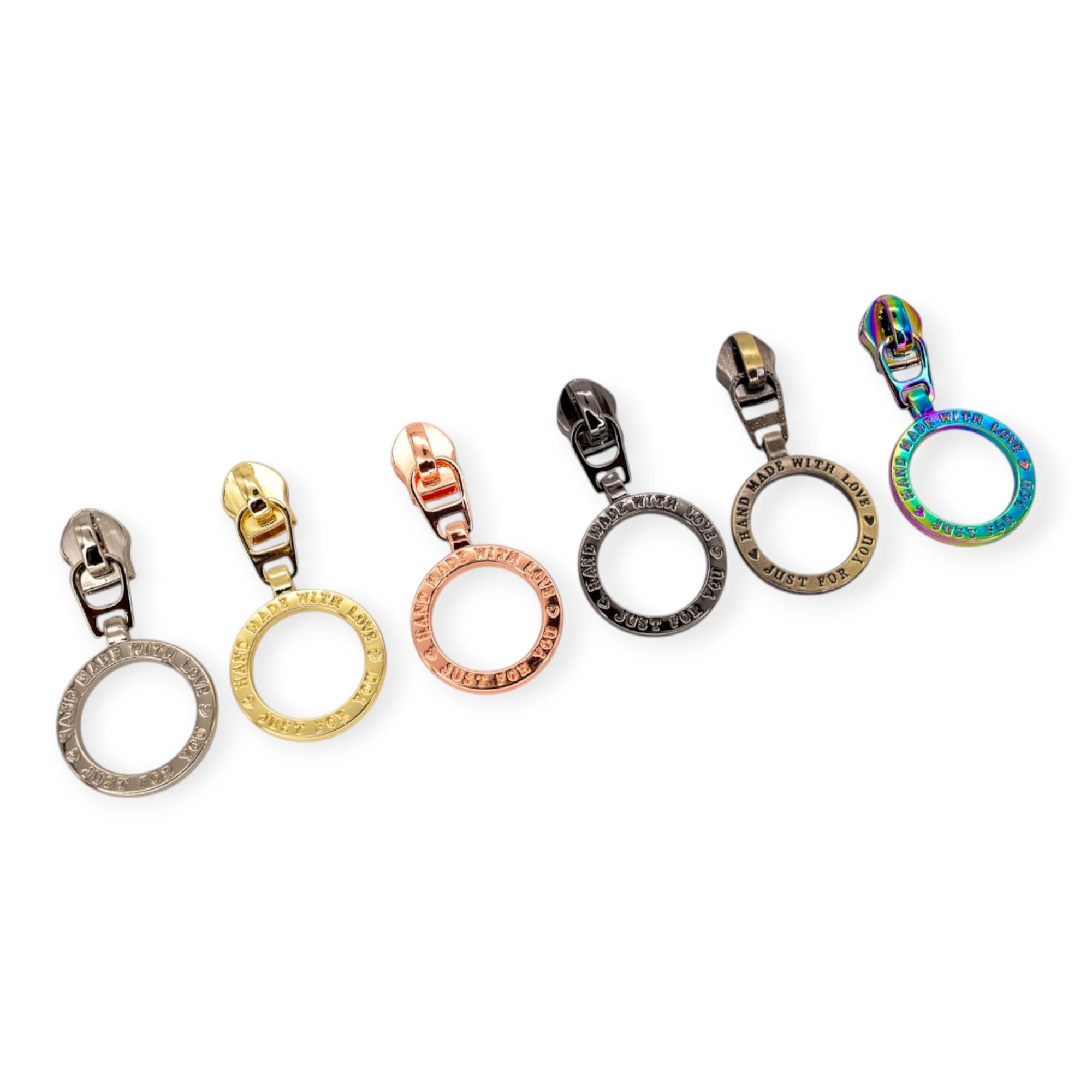 Give your bags a polished finished look with these #5 Nylon Zipper Pulls. The circle ring is engraved with Handmade With Love, Just For You and is easy to grip on handbags, wallets, and pouches.