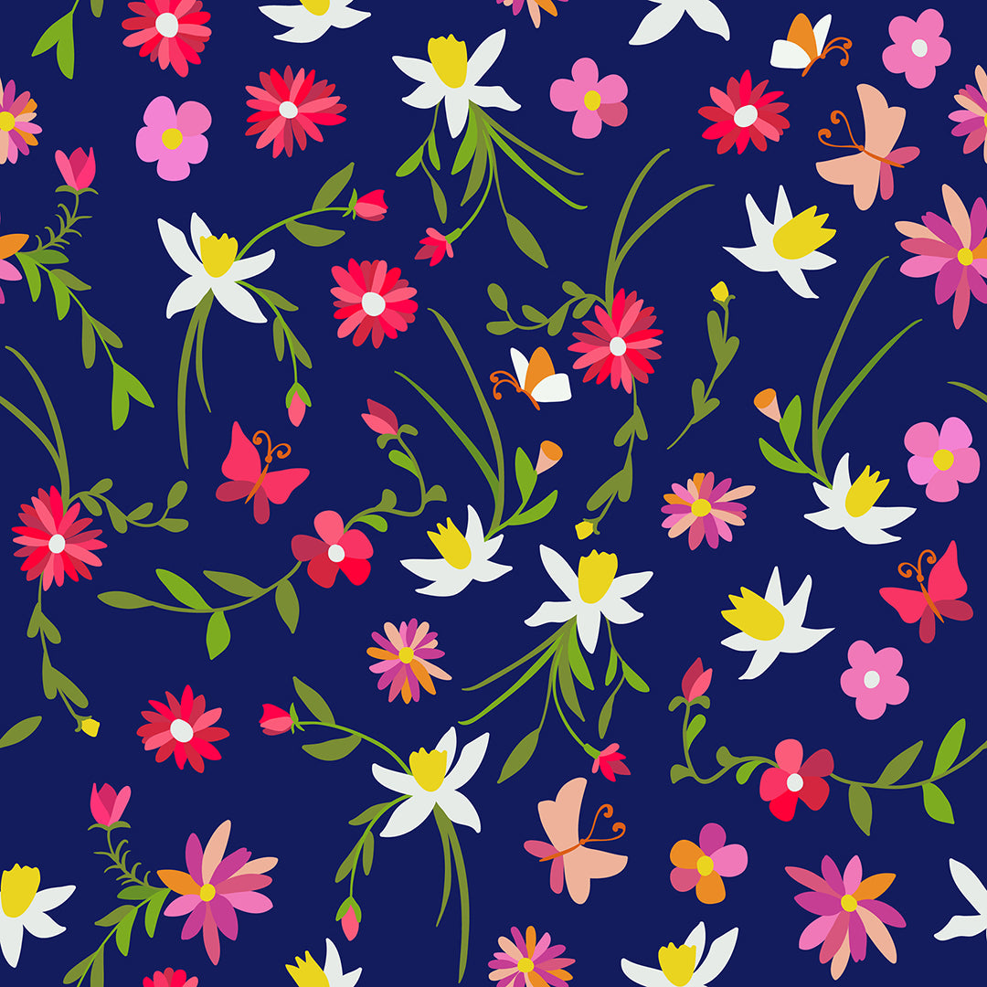 Butterfly and Wildflowers – 100% Quilting Cotton Fabric by the Yard