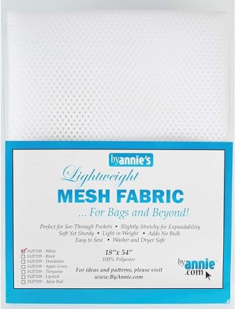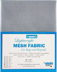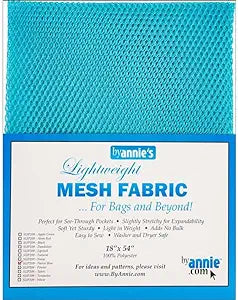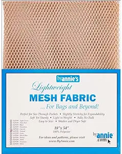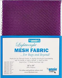 By Annie's Mesh Fabric is the perfect fabric for all your storage and garment needs. Made from lightweight, stretchy 100% polyester, it's easy to work with and won't slip. Use it for pockets, bags, or garment applications. Finish edges with our fold-over elastic for extra stretch. Machine washable and dryer safe. Size: 18in x 54in.