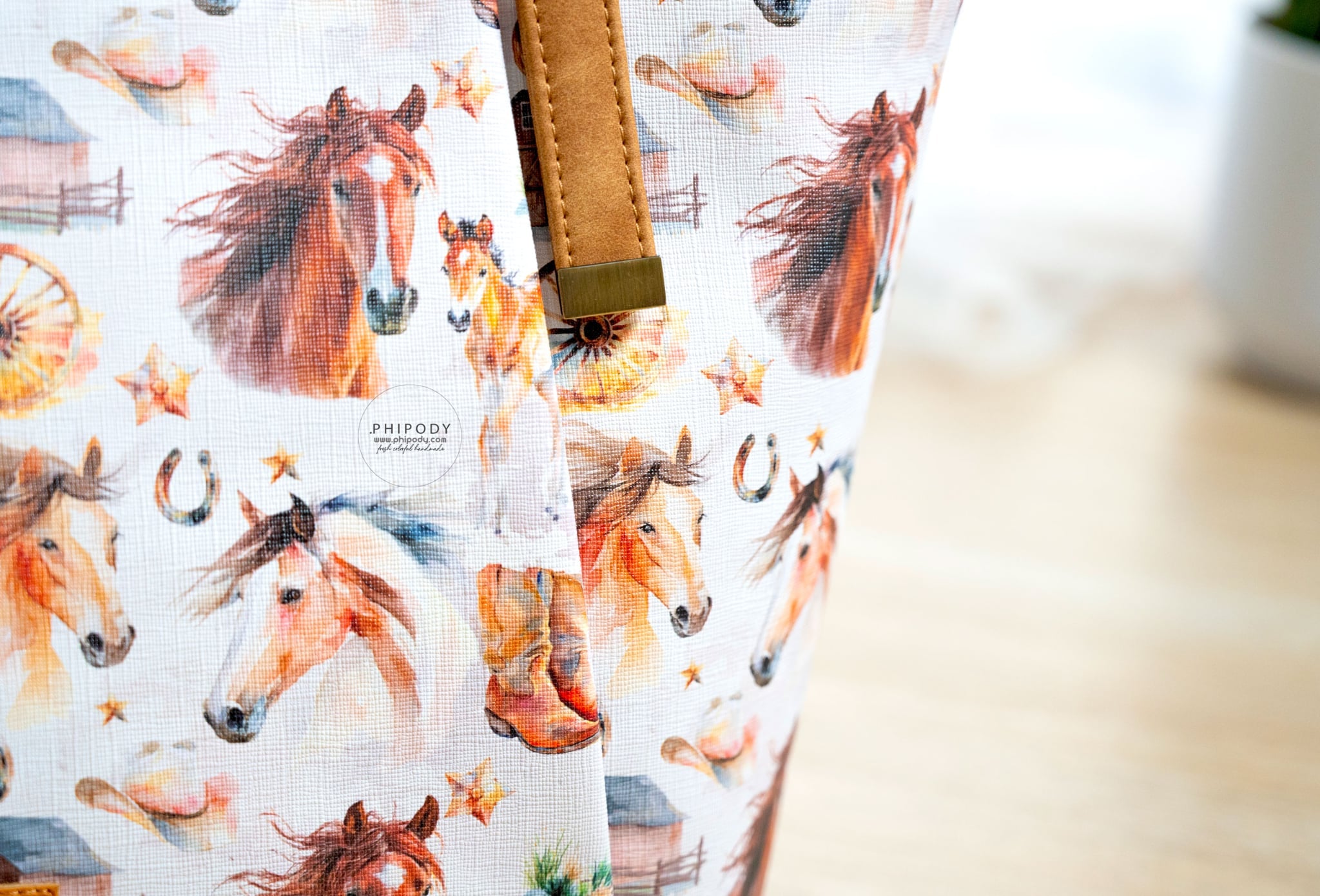 Capture the rustic charm of the West with Cowboy Country Printed Vinyl. This linen-textured vinyl features watercolor-style horses, barns, boots, and cowboy hats in warm desert tones of tan, rust, and cream. With its soft matte finish and durable structure, it’s perfect for western-inspired handbags, wallets, and accessories that tell a story of wide-open plains and handmade craftsmanship.