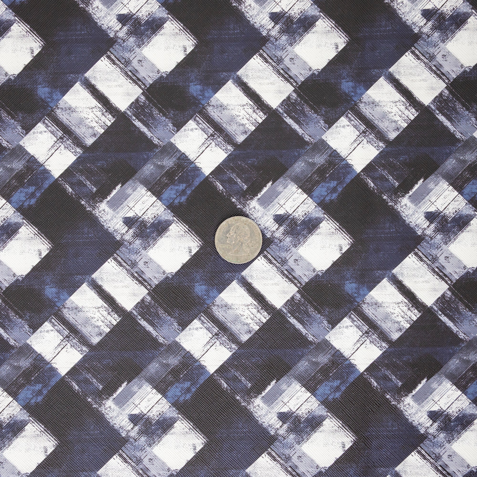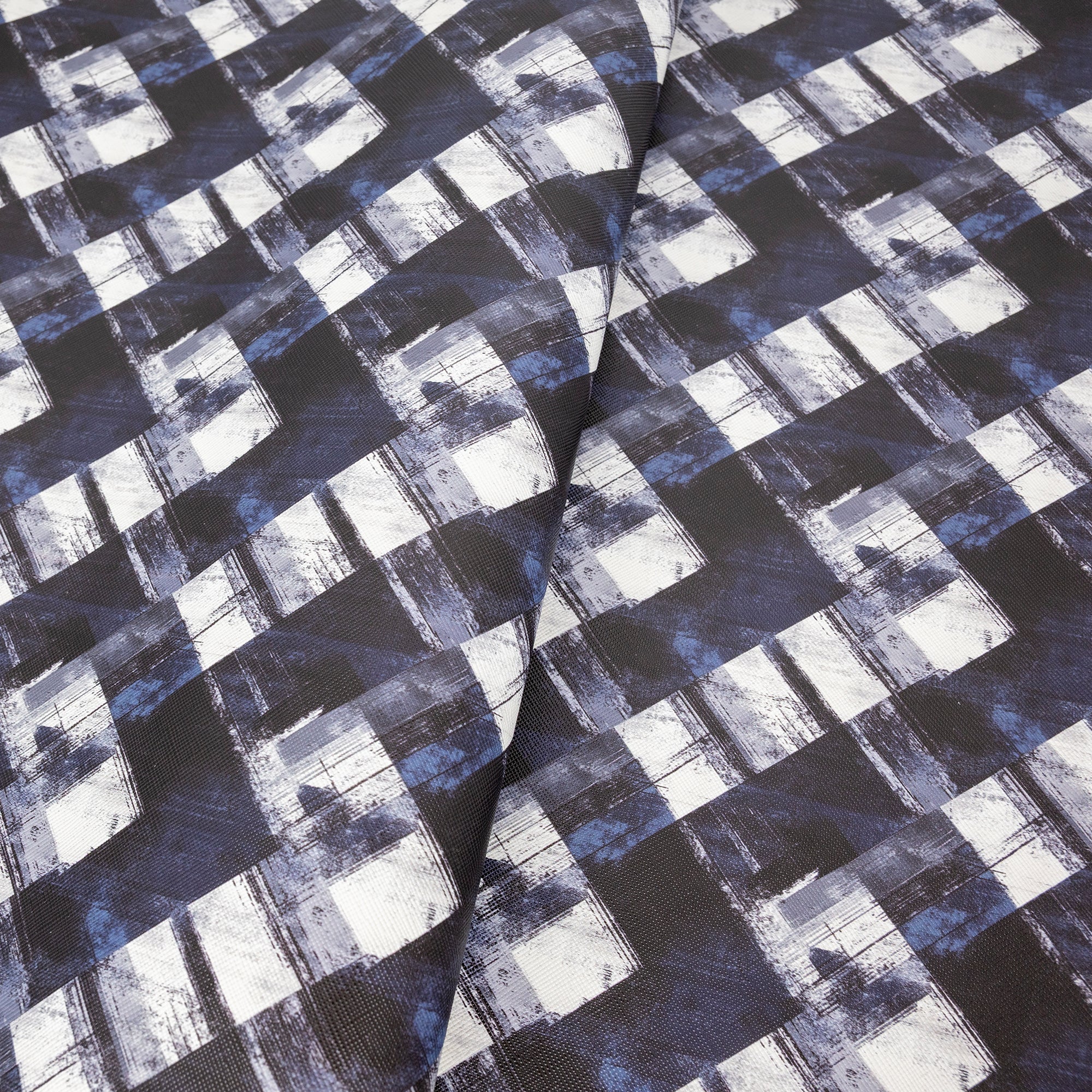 Add bold structure to your next bag project with Grunge Plaid Saffiano Texture Vinyl. This distressed diagonal plaid blends charcoal, deep navy, and crisp white for a modern, look. The crosshatch Saffiano finish adds body, reduces glare, and wipes clean, perfect for statement bags, wallets, and accessories.