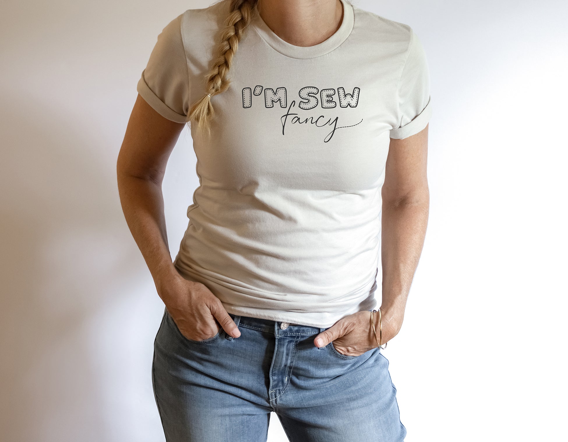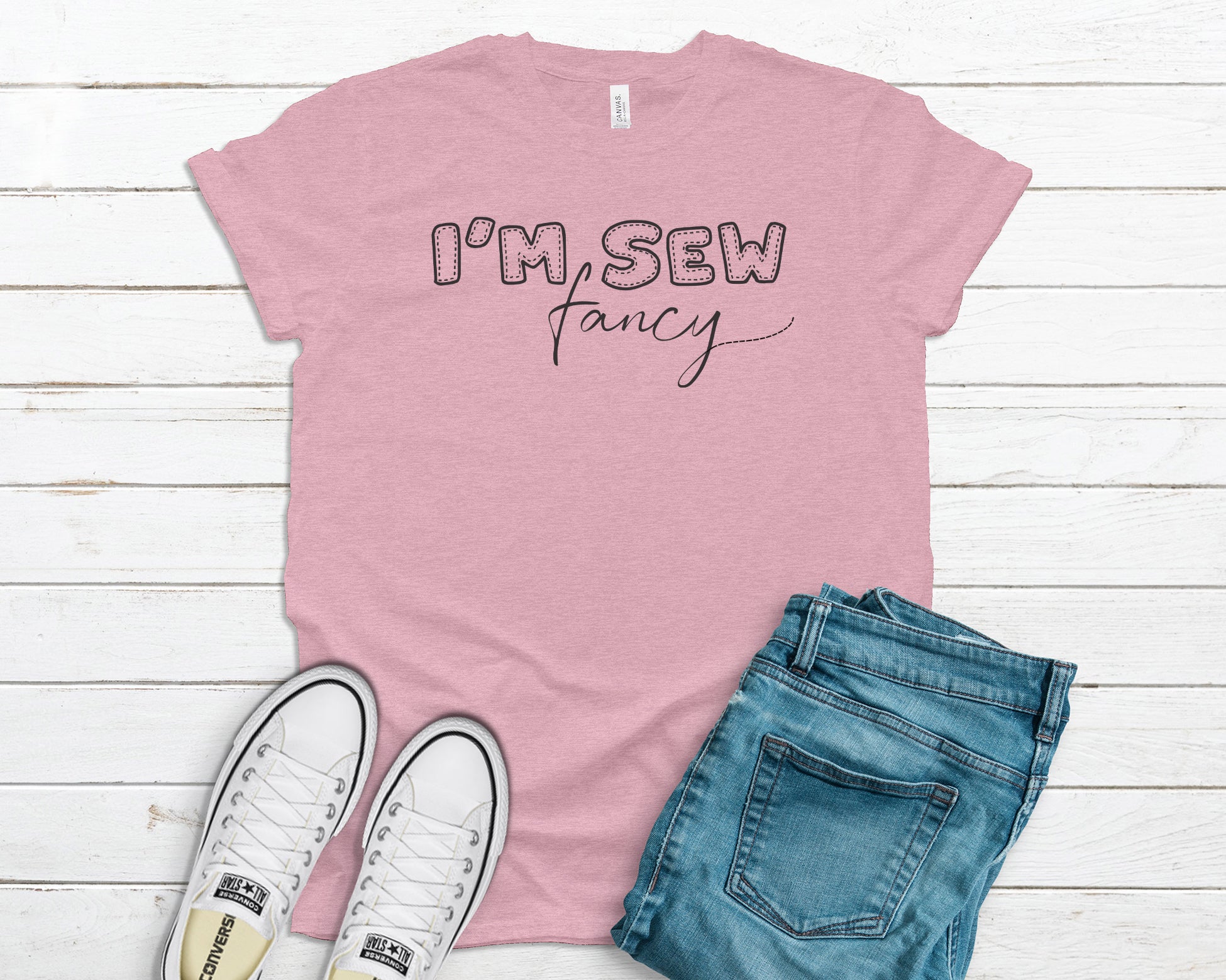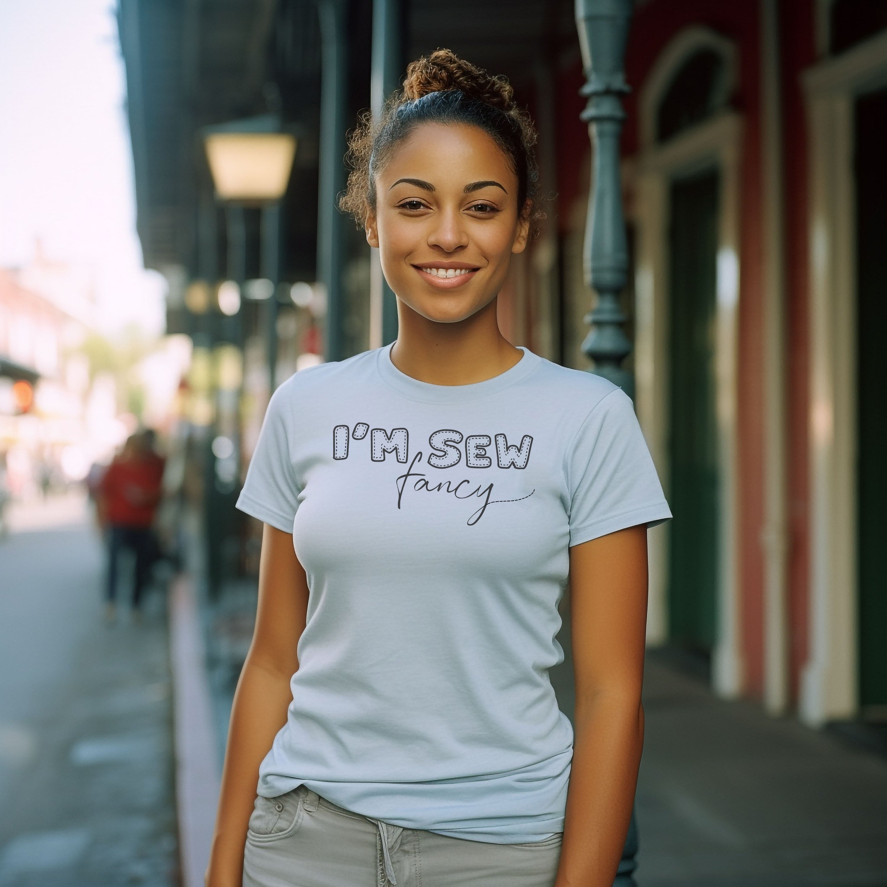 This t-shirt feels soft and lightweight, with the right amount of stretch. It's comfortable and flattering for all. Graphic on the front: I'm Sew Fancy