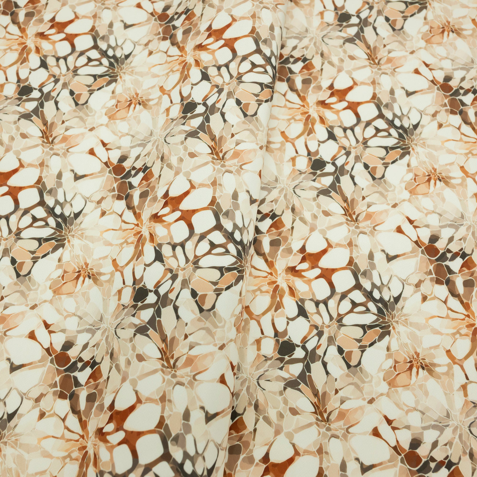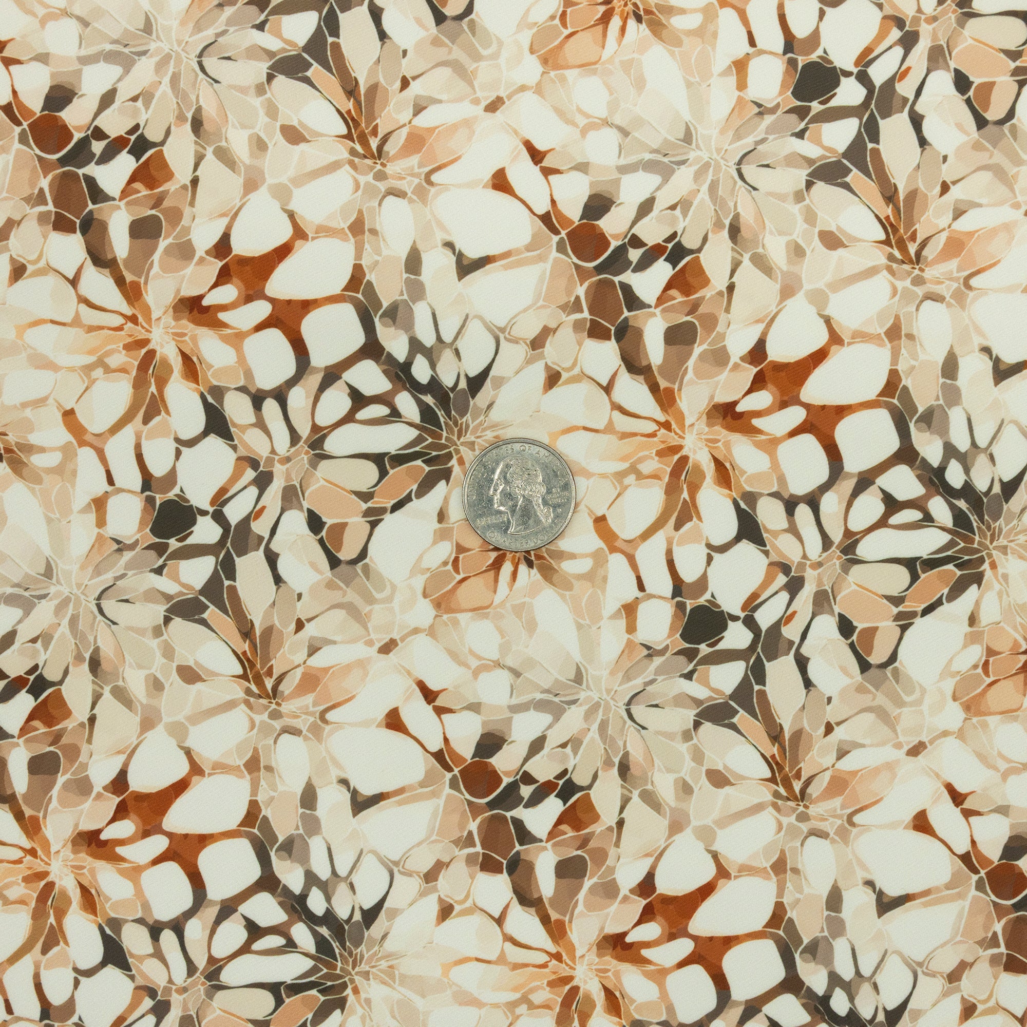 | Design | Abstract floral mosaic in warm sand and neutral tones |