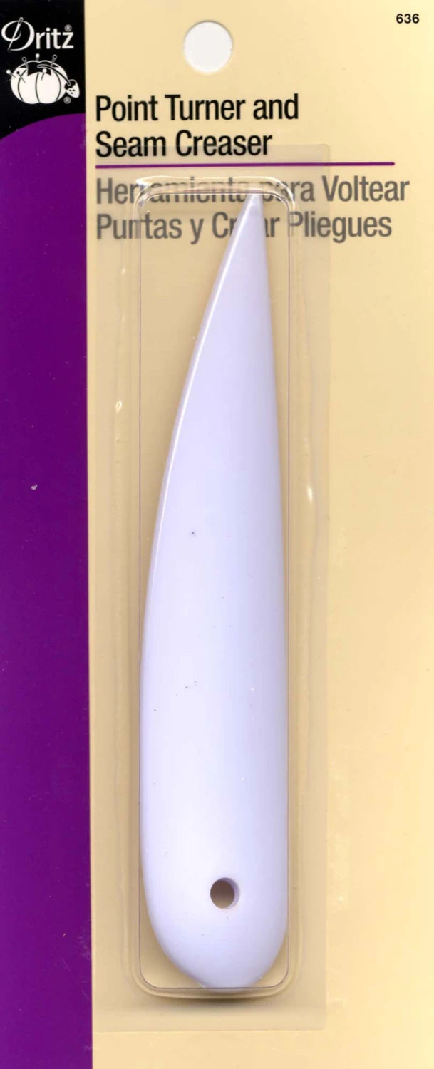 The Dritz Point Turner and Seam Creaser 5" is a versatile and damage-free tool for sewing enthusiasts. Made of plastic, this tool allows for easy fabric turning and precise creasing. It also simplifies the process of removing basting stitches. The package includes a 5-inch pointer turner and seam creaser in white.