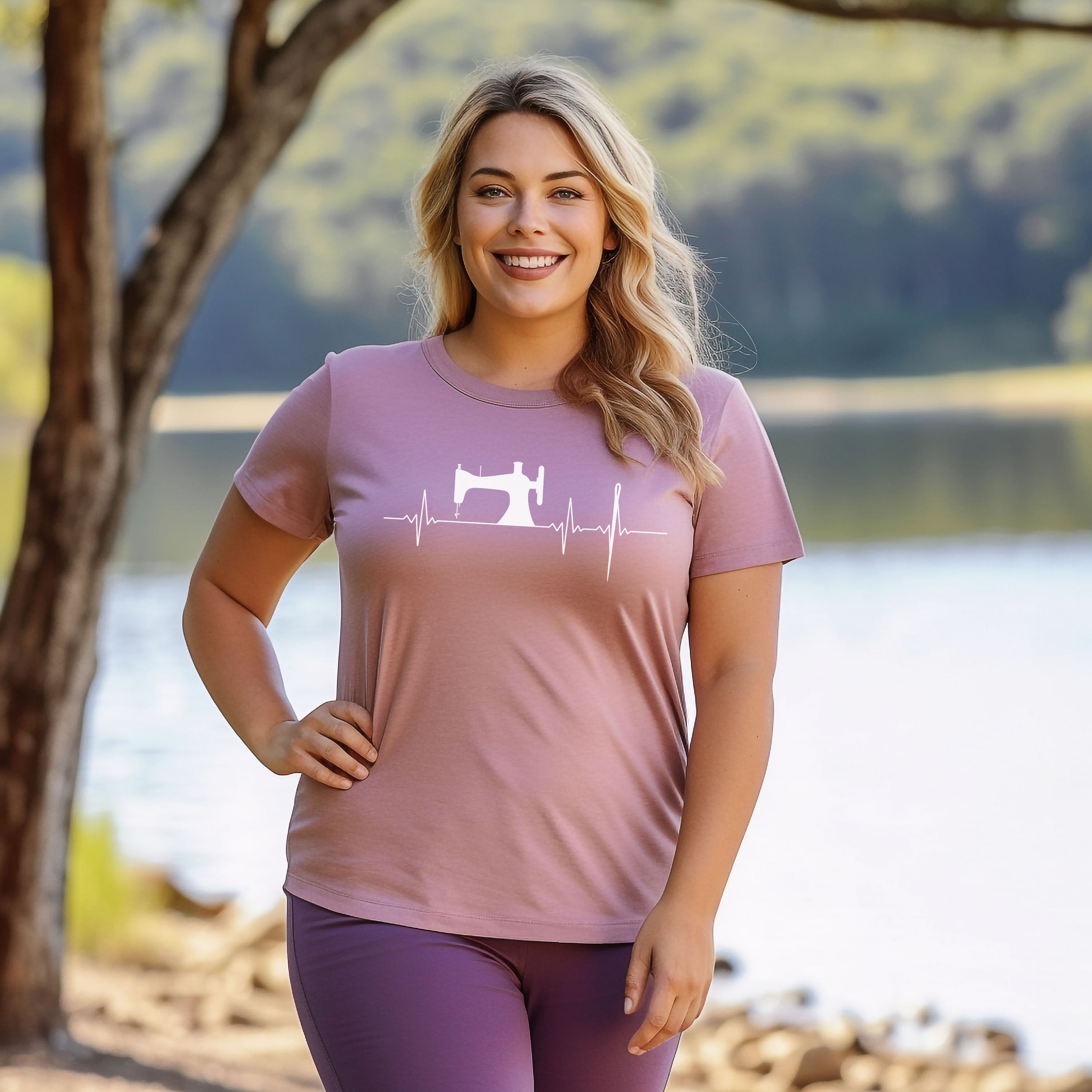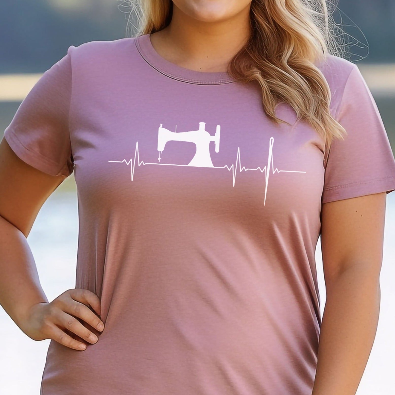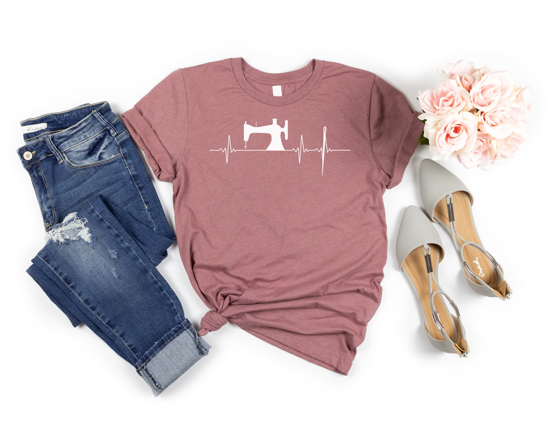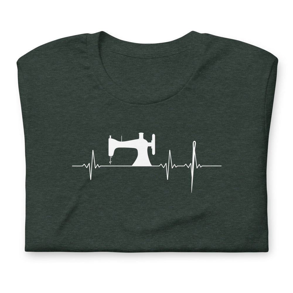 This t-shirt feels soft and lightweight, with the right amount of stretch. It's comfortable and flattering for all. Graphic on the front: EKG Heartbeat with Sewing Machine and Sewing Needle.