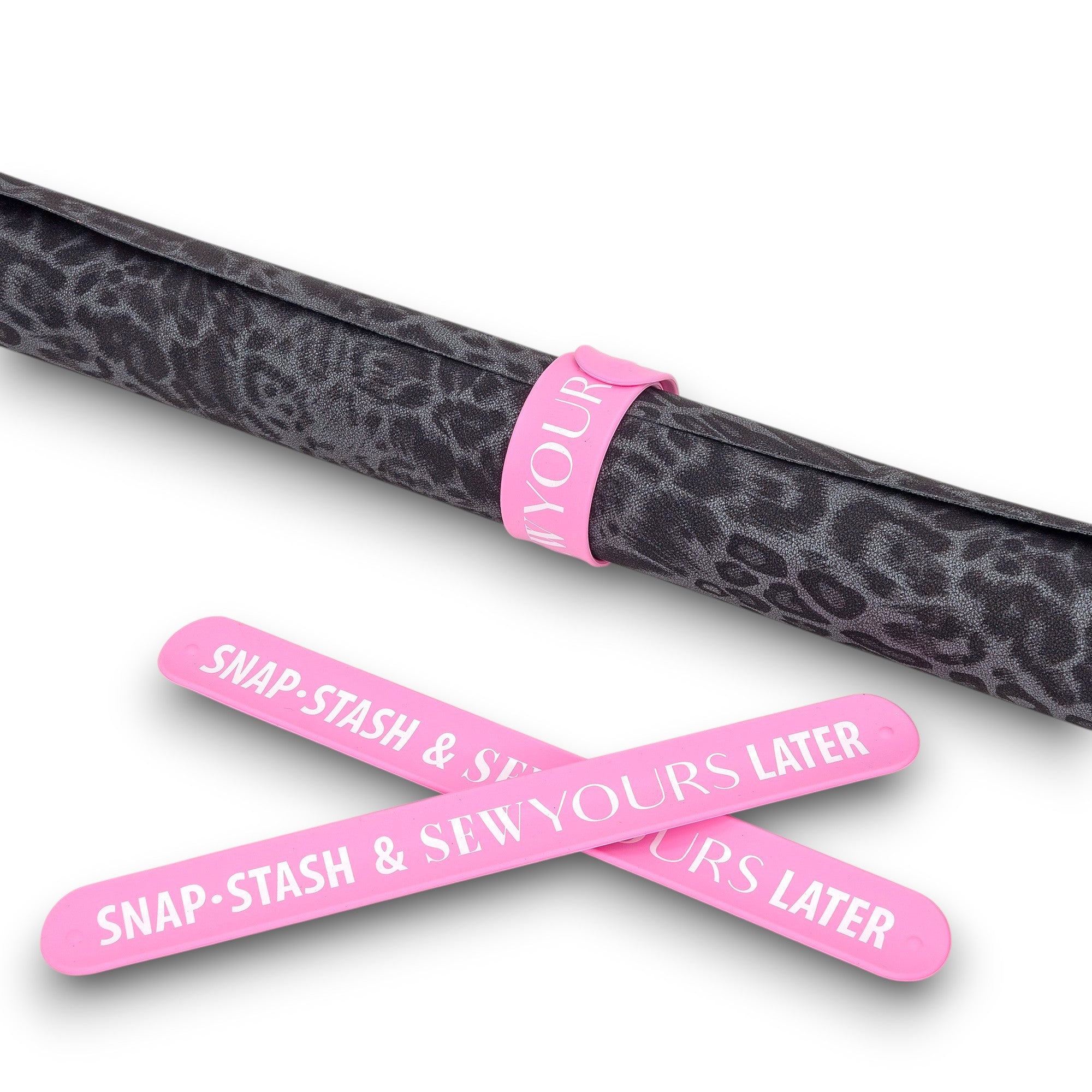 Keep your rolled fabrics neatly organized with our Snap · Stash & Sew Yours Later™ Silicone Slap Bracelets. Designed specifically for bag makers, this reusable silicone band wraps securely around rolled vinyl to prevent unrolling and creases. Measuring approximately 8.5" long by 1" wide, it’s the perfect size to snap around rolled vinyl, canvas, Linertex™ and keep your workspace tidy. The smooth silicone surface won’t damage your materials and adds a fun pop of color to your sewing setup.
