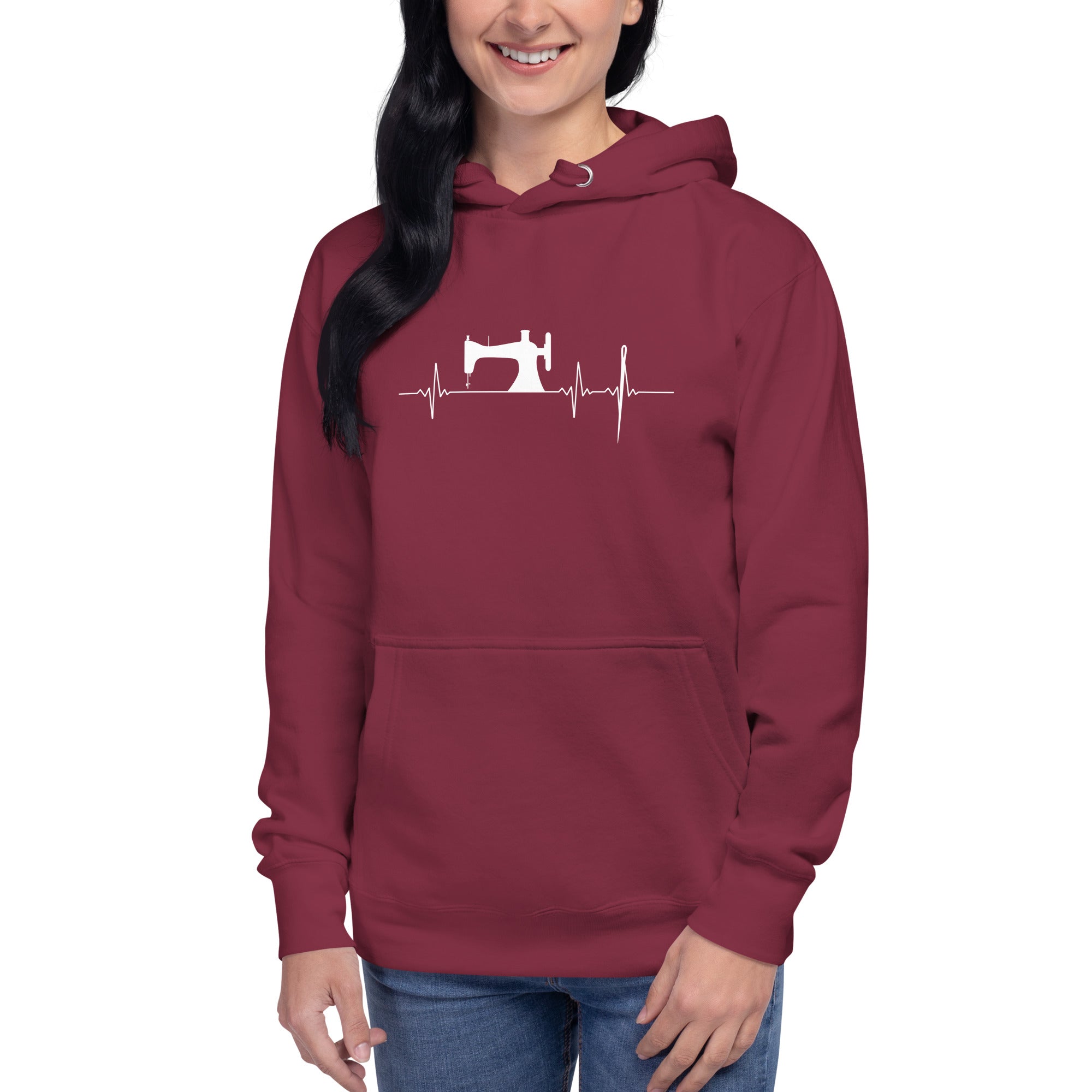 Graphic on the front: EKG Heartbeat with Sewing Machine