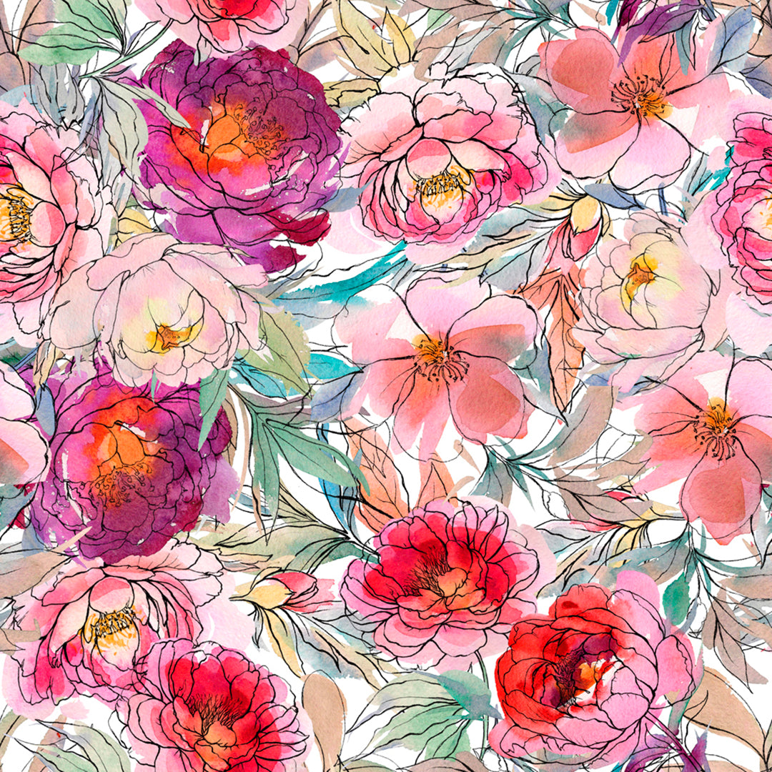 Watercolor Peonies – 100% Quilting Cotton Fabric by the Yard
