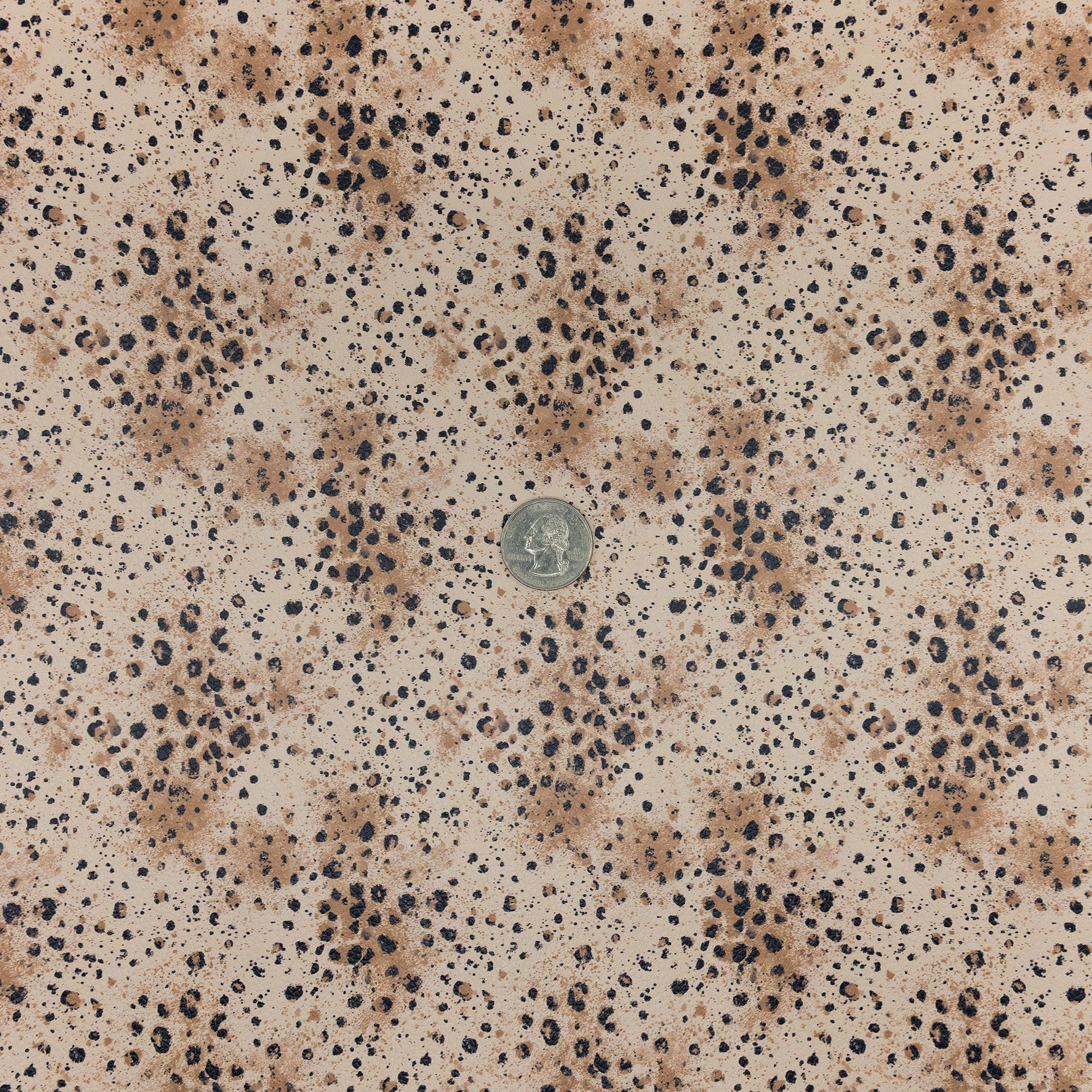 | Design | Neutral bronze and black leopard-style splatter pattern on a warm beige background |