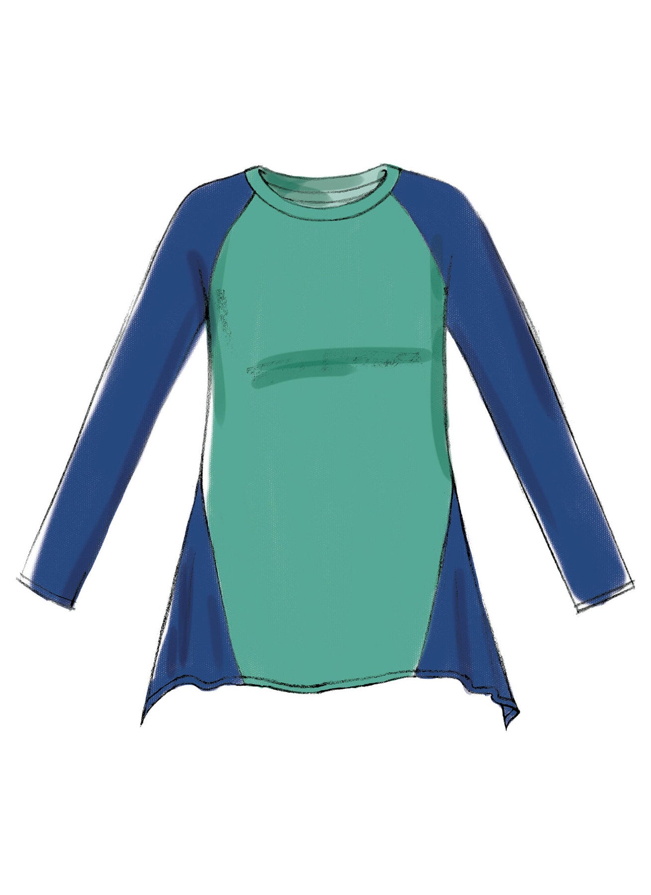 | Views Included | Views A–D: A short sleeve with shaped overlay and shaped hem; B short sleeve with shaped overlay and shaped hem; C long sleeve with contrast side insets; D long sleeve with side insets |