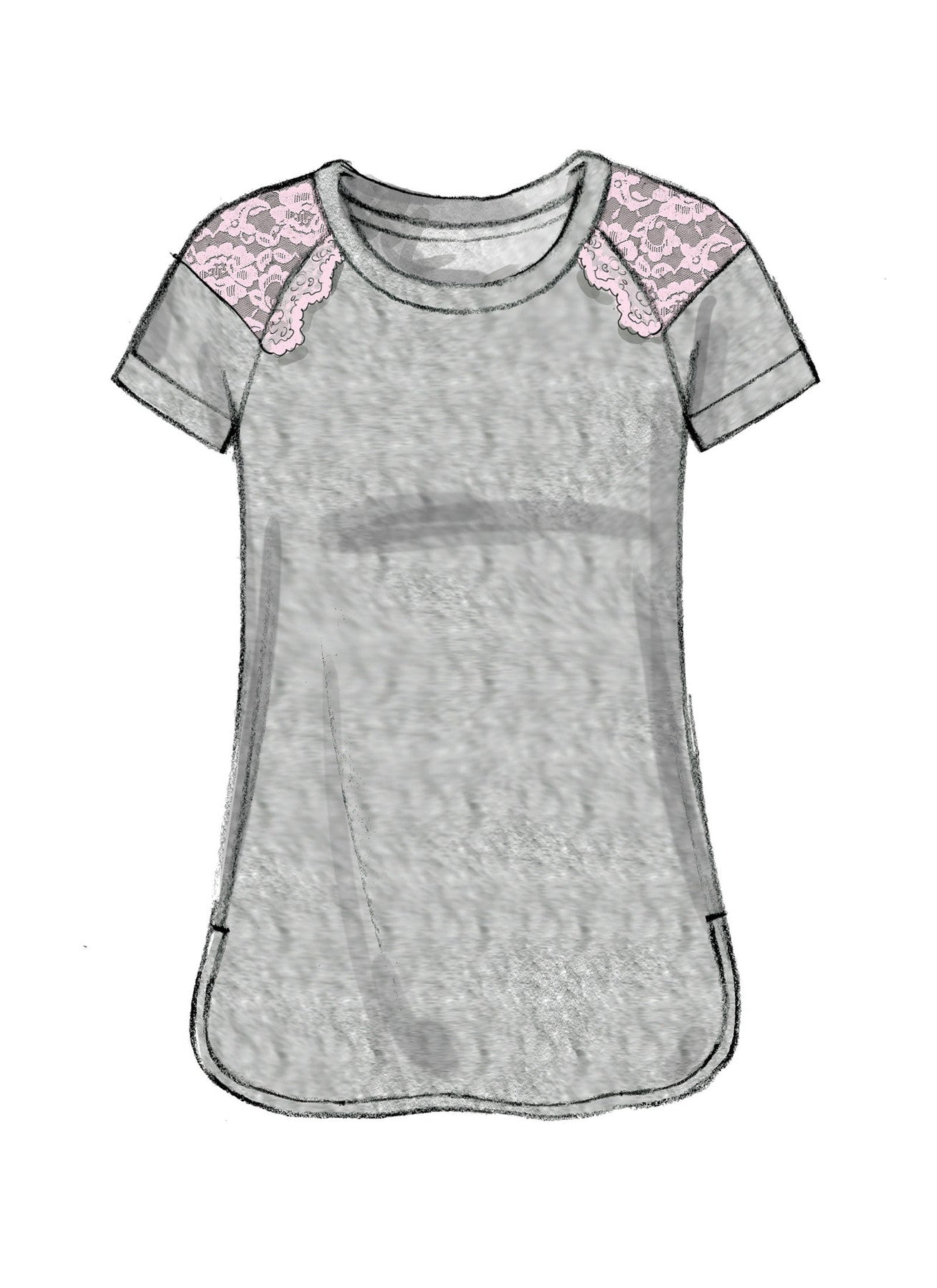 | Fabric Needed | Lightweight to medium-weight moderate stretch knits: jersey, interlock, matte jersey. Contrast A, C: lace |