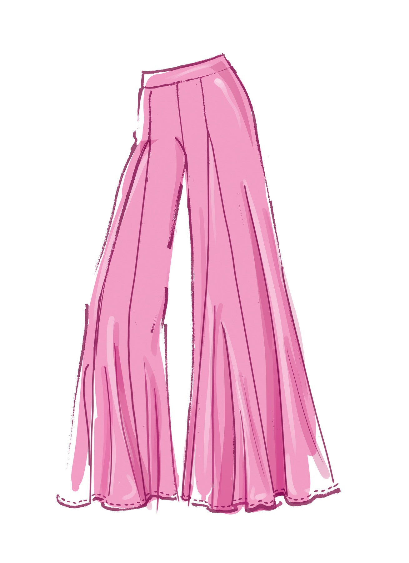 Views Included Views A–C: wide-leg godet palazzo pants; B and C feature panel seams ideal for color blocking or contrast