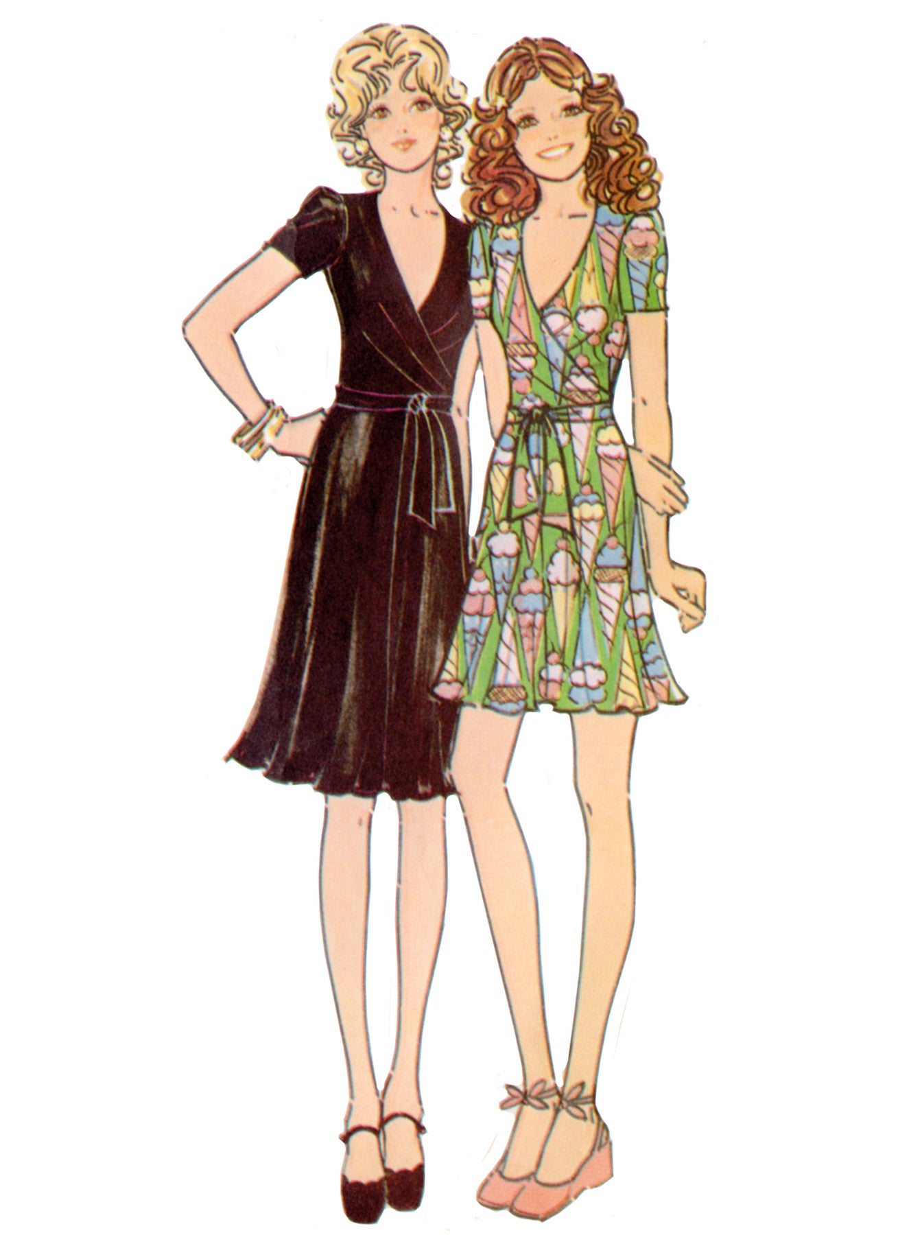 | Views Included | Wrap dress, Views A–B: two lengths; short sleeves with darts; tie passes through right side seam |