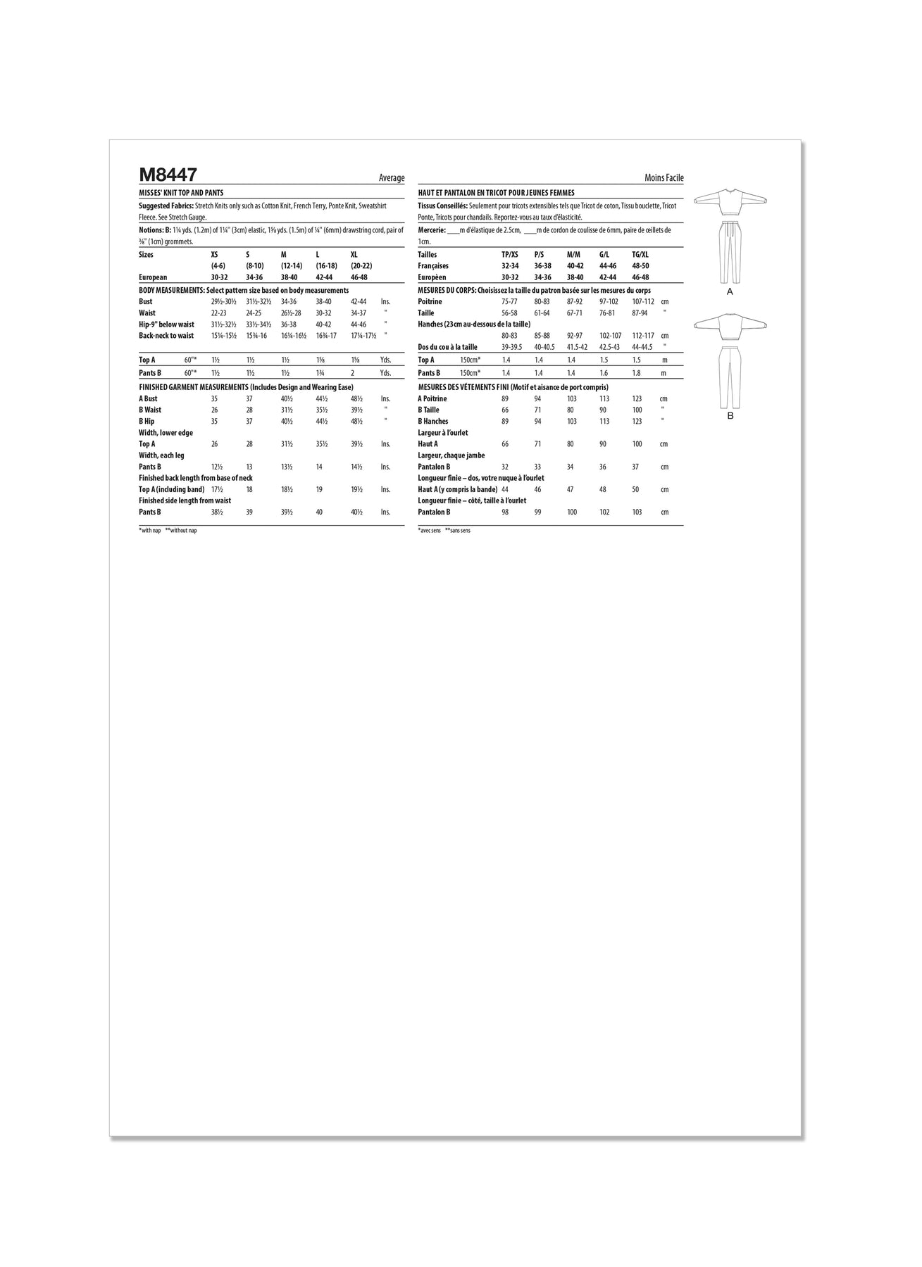 McCall’s M8447 – Misses’ Knit Top & Drawstring Pants Sewing Pattern (Sizes XS–XL)
