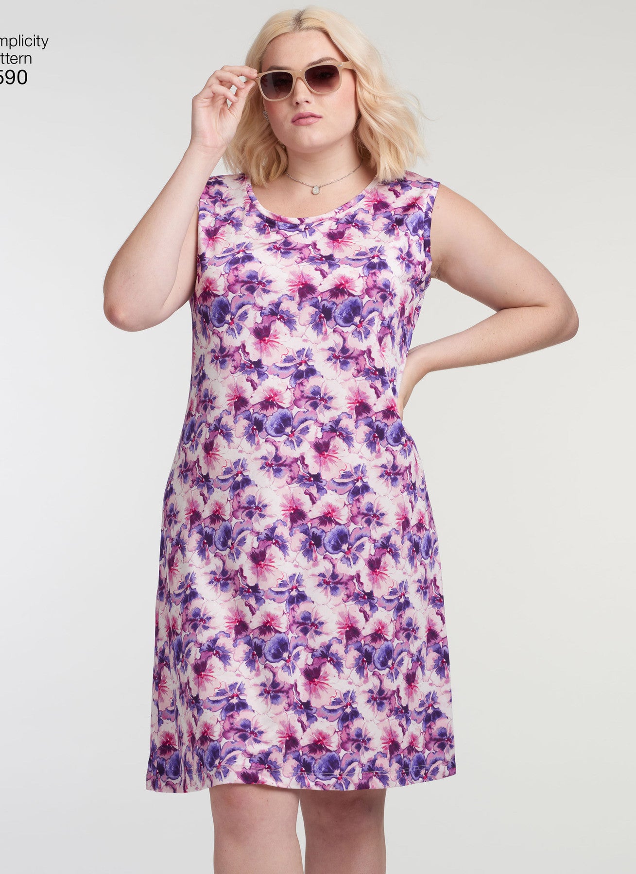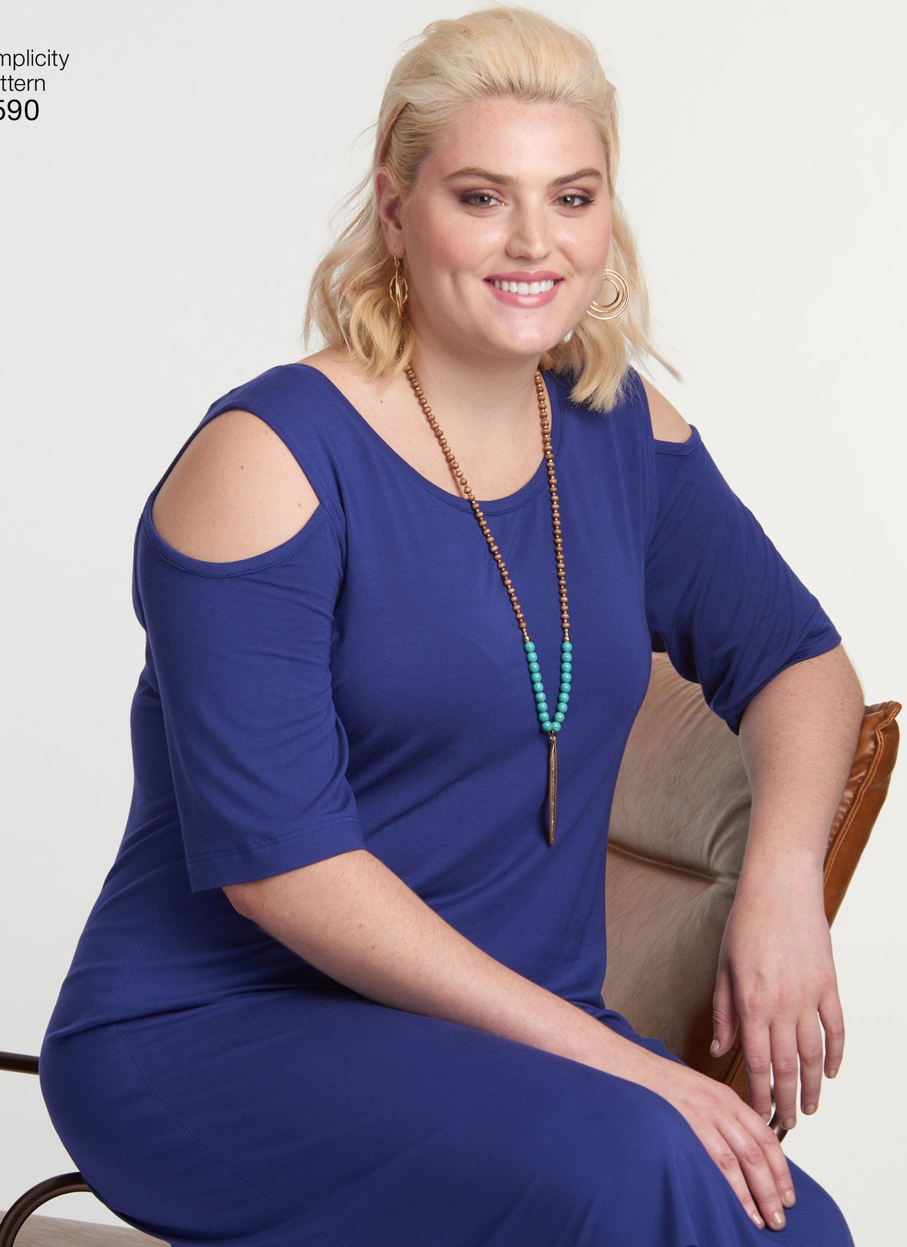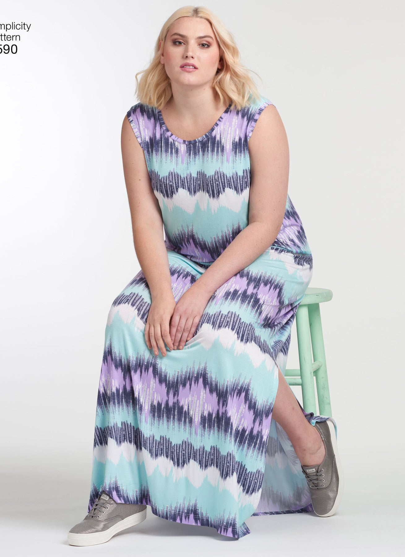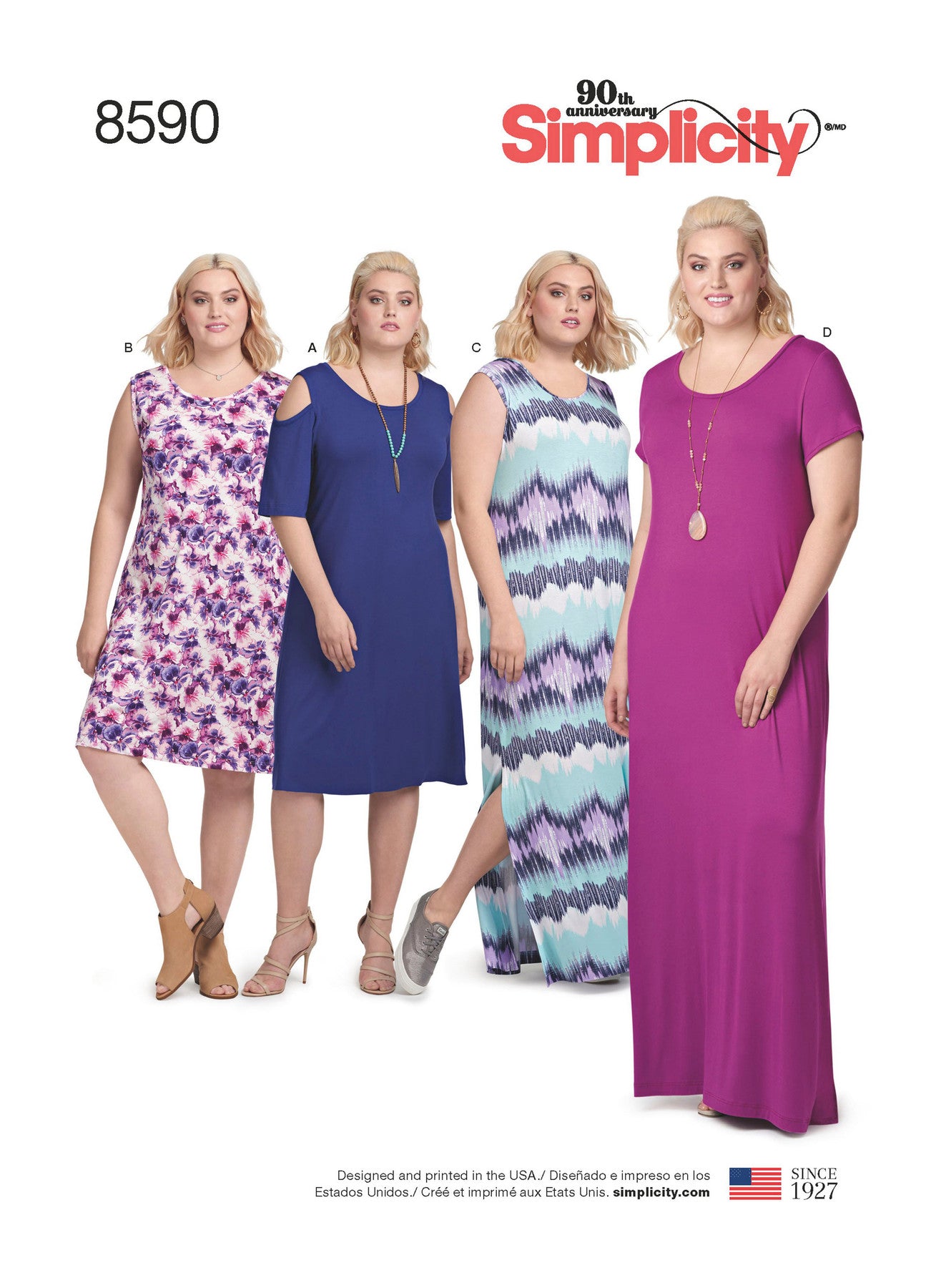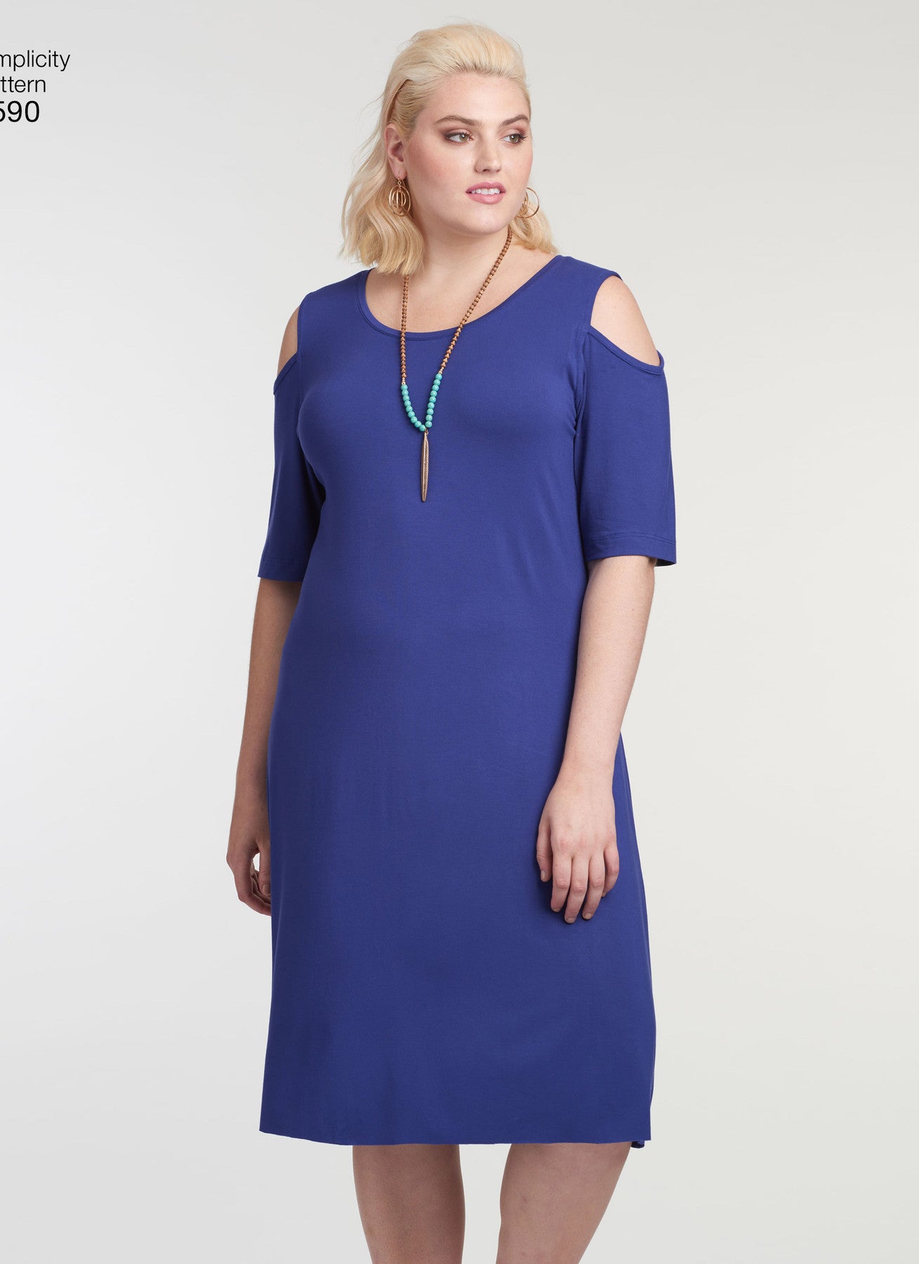 Simplicity S8590 Women’s Knit Dresses is an easy sewing pattern designed for stretch knits. Create flattering plus-size knit dresses in two lengths with sleeve options including cold shoulder, sleeveless, or short sleeve. All views feature a crew neckline and can be made in mini or maxi length.