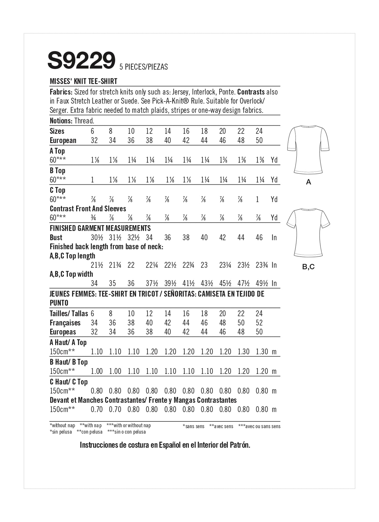 | Pattern Name | Simplicity S9229 Misses’ Knit Tee Shirt |