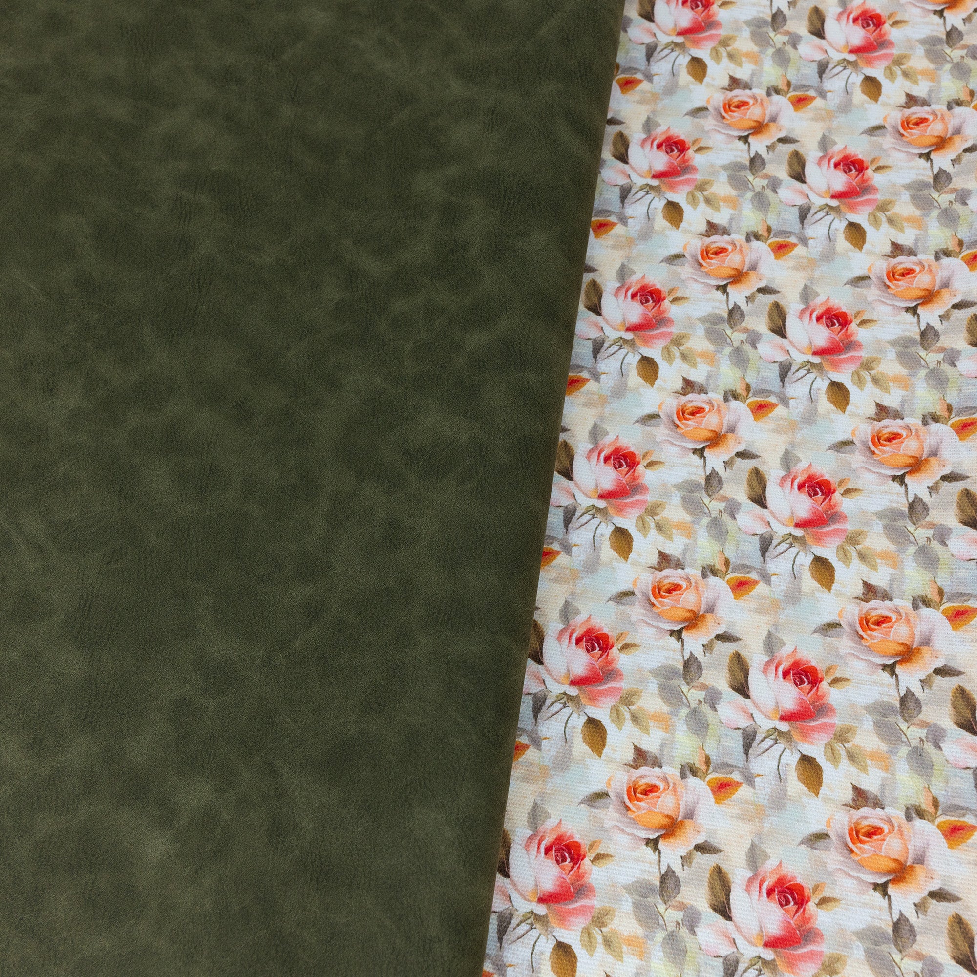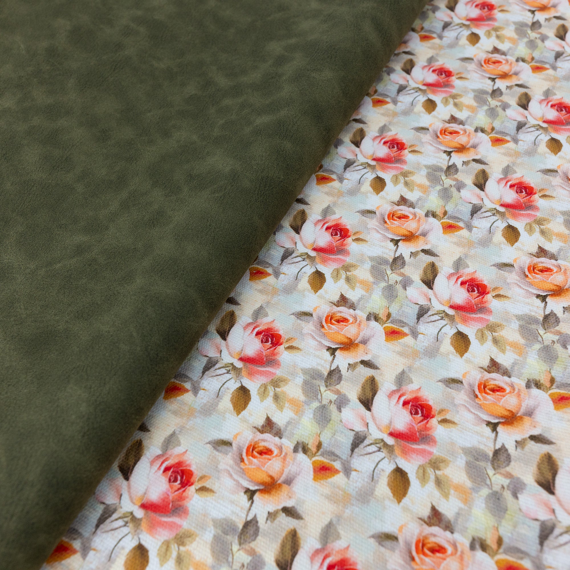 Faded Petals Fabric Bundle for bag making pairs earthy depth with soft, romantic florals for a timeless, wearable finish. This curated bundle combines rich army green Harrison Suede™ with the delicate Faded Petals water-resistant cotton canvas lining, creating a grounded yet feminine look that works beautifully for everyday handbags, totes, and accessories.