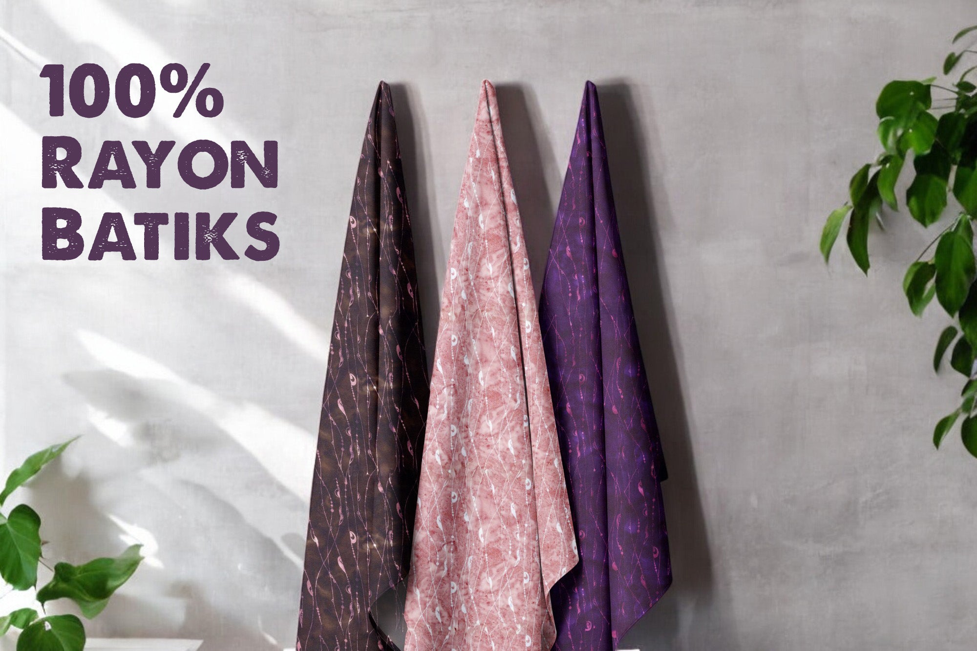 Crafted using a traditional batik process in Indonesia, each yard is a unique, artisan-made masterpiece. The smooth, breathable texture of rayon makes it perfect for creating stylish, comfortable, and lightweight apparel with a luxurious drape.
