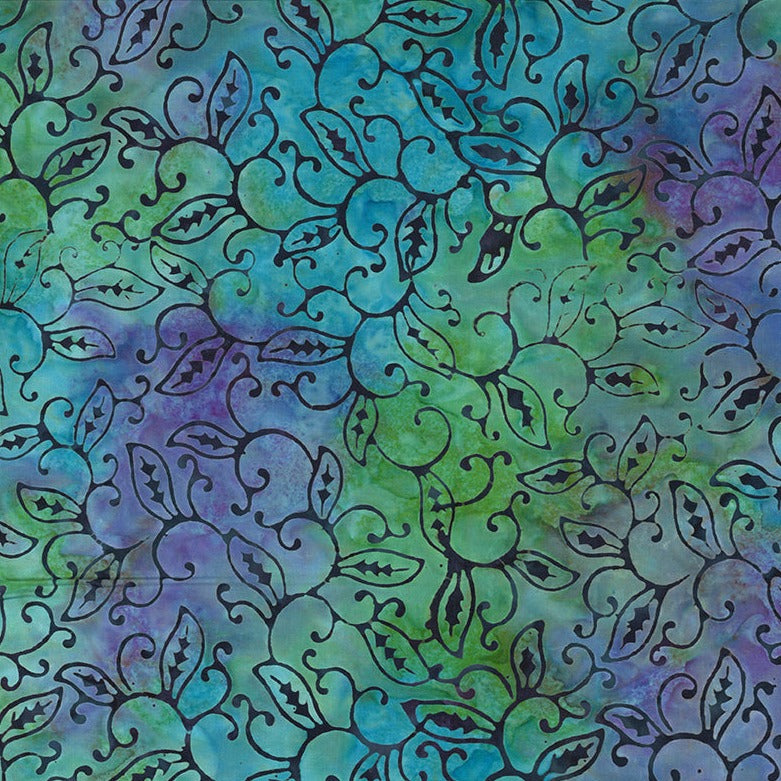 Batiks Swirling Vine Turquoise/Multi – 100% Quilting Cotton Fabric by the Yard