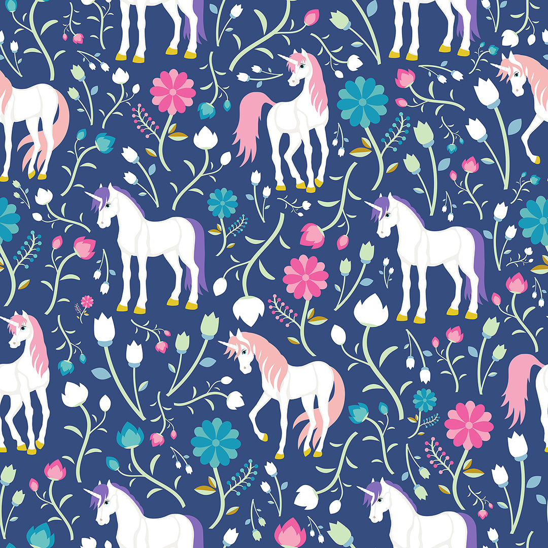 This Unicorns on Blue 100% cotton fabric by the yard is an exclusive to Sew Yours.