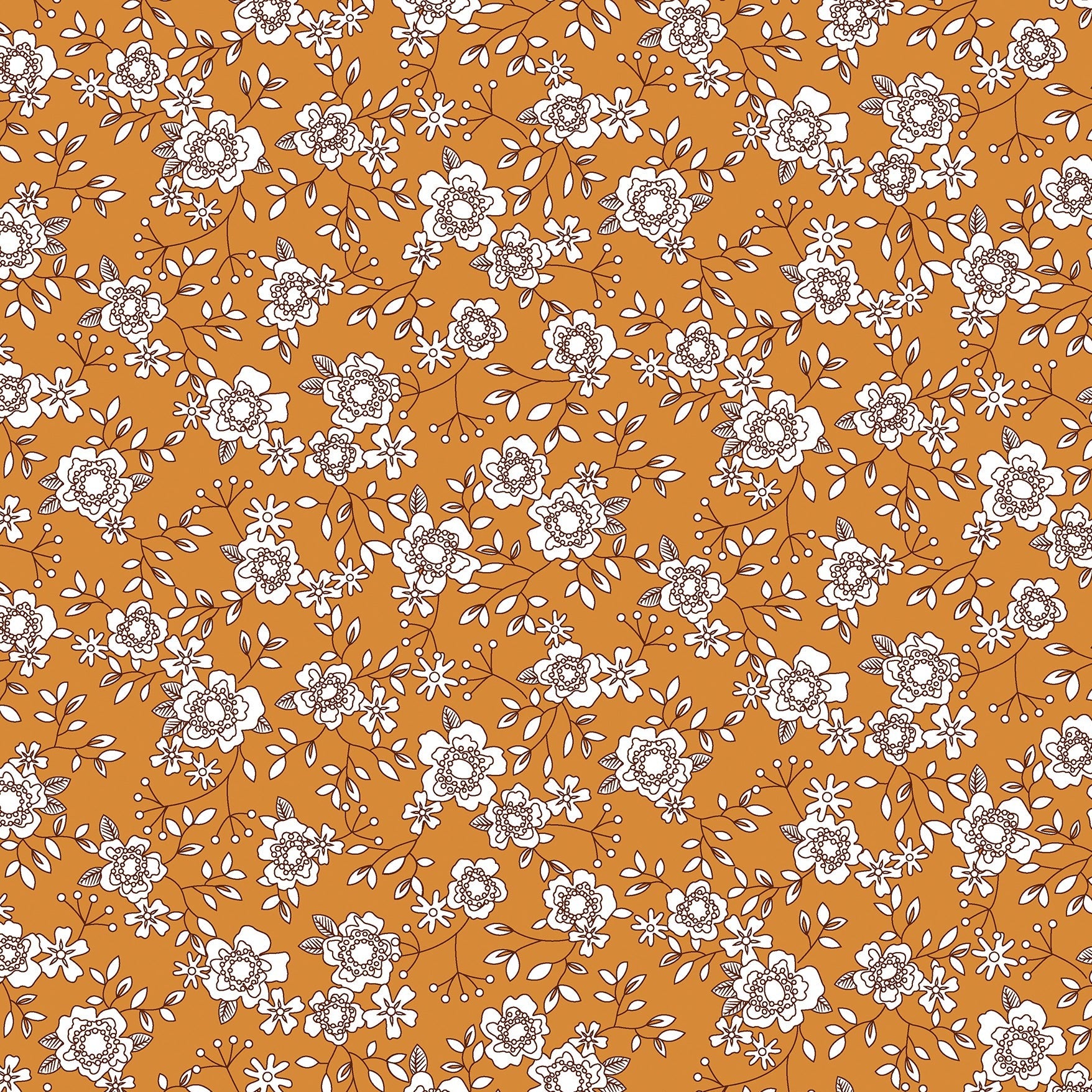 The Winter Rose Pumpkin is a unique fabric featuring a delicate white floral print on a warm pumpkin-colored background.