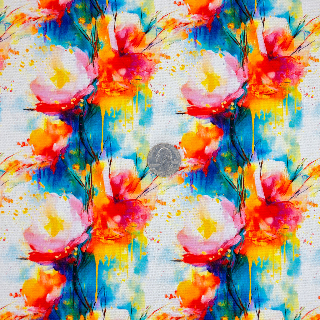Colorfall 12 oz Water-Resistant Cotton Canvas combines the natural softness of cotton with a vibrant, high-energy floral print. Featuring bold strokes of magenta, coral, gold, and teal on a splashy white background, this fabric delivers the look of hand-painted art with the durability of canvas. Unlike stiff, plastic-like alternatives, this PU-coated cotton canvas stays flexible while adding moisture resistance, making it perfect for standout bags, straps, and accessories.