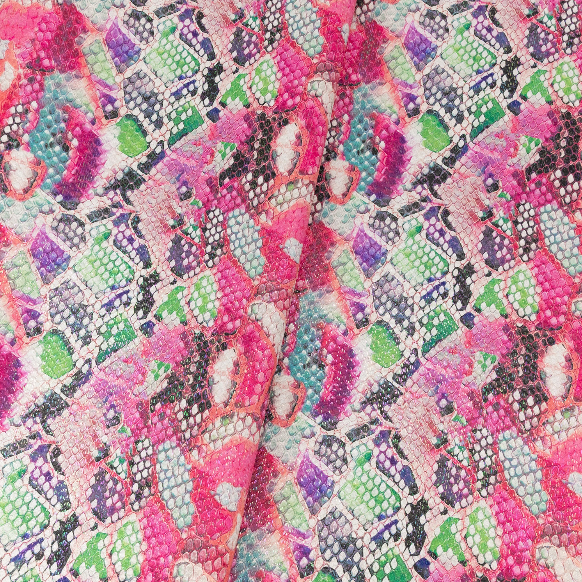 Striking and sophisticated, LumiScale™ Iridescent Scale Vinyl delivers bold texture and radiant color with a luminous, light-catching finish. The dimensional scale emboss paired with its color-shifting sheen creates dramatic depth and visual movement. This 0.8 mm PVC vinyl has a flexible structure, and wipes clean easily, making it ideal for statement bag exteriors.