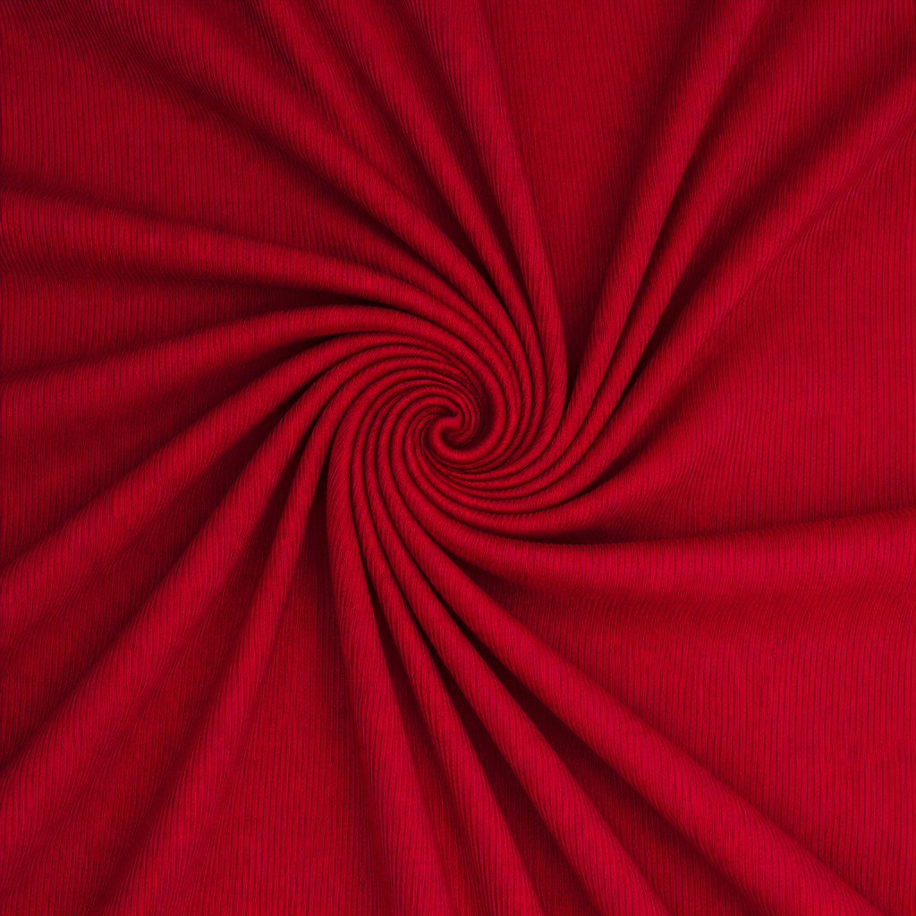 Berry rib knit fabric made with 92% viscose fiber and 8% spandex for a soft, stretchy feel with great comfort and recovery. With a 260gsm weight and a wide 71" width, this rib knit is substantial without feeling bulky, making it ideal for fitted garments that still move with you. It sews well on a domestic machine using a zigzag or stretch stitch, or on a serger. For the cleanest hems, a twin needle or coverstitch works beautifully.