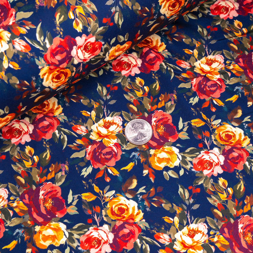 Scarlet Garden is an exclusive Double Brushed Polyester knit jersey fabric, designed by Melissa and available only at Sew Yours. It feels buttery soft the moment you touch it, drapes beautifully, and resists wrinkles so you can skip the iron. With its 4-way stretch, this fabric is versatile and comfortable for everyday wear. It sews easily on a domestic machine with a zigzag or stretch stitch, or on a serger, and you can finish your topstitching with a cover stitch machine if you like.