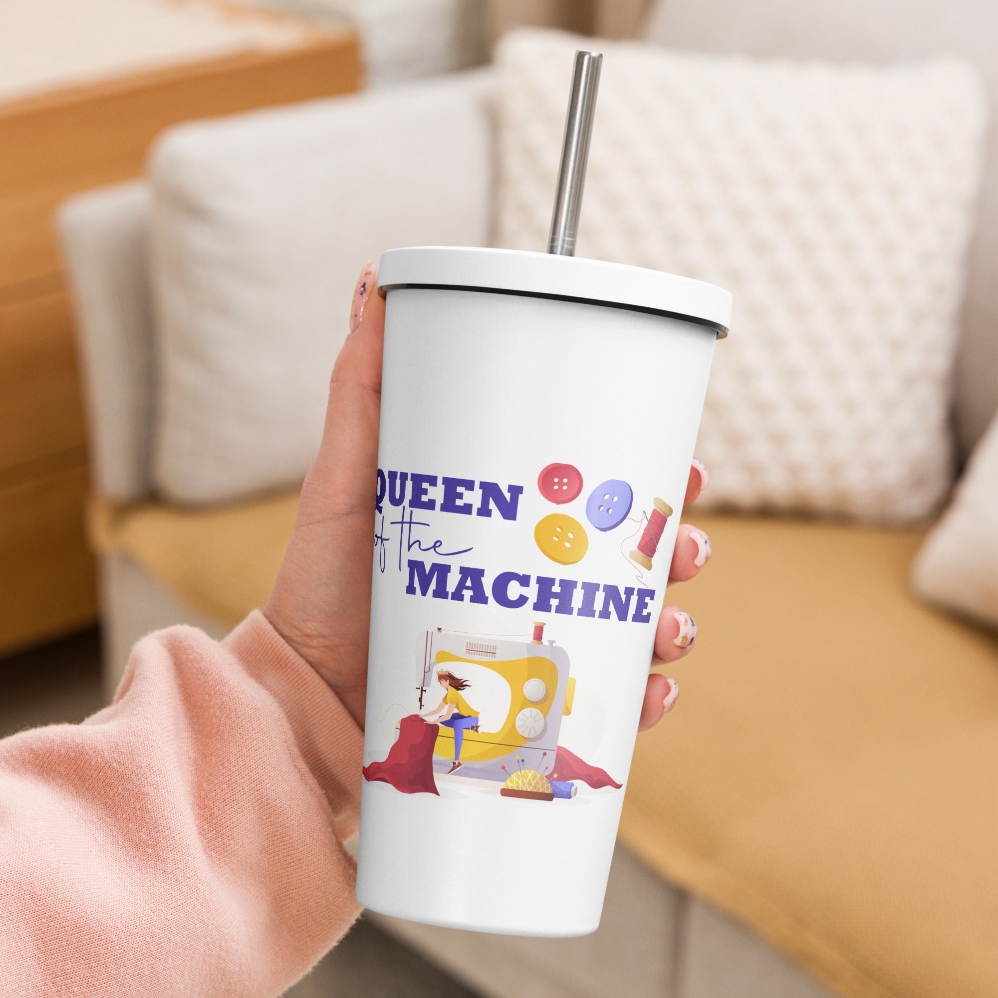 Introducing the Queen of the Machine 20 oz Tumbler, crafted with high-grade stainless steel for superior quality. This tumbler holds 20 oz (600 ml) of your favorite beverage and measures 4" x 7.2" (10.1 cm x 18.2 cm). It comes with a convenient straw and lid, but please note that this tumbler is not safe for dishwashers or microwaves. For best care, hand-washing is recommended.