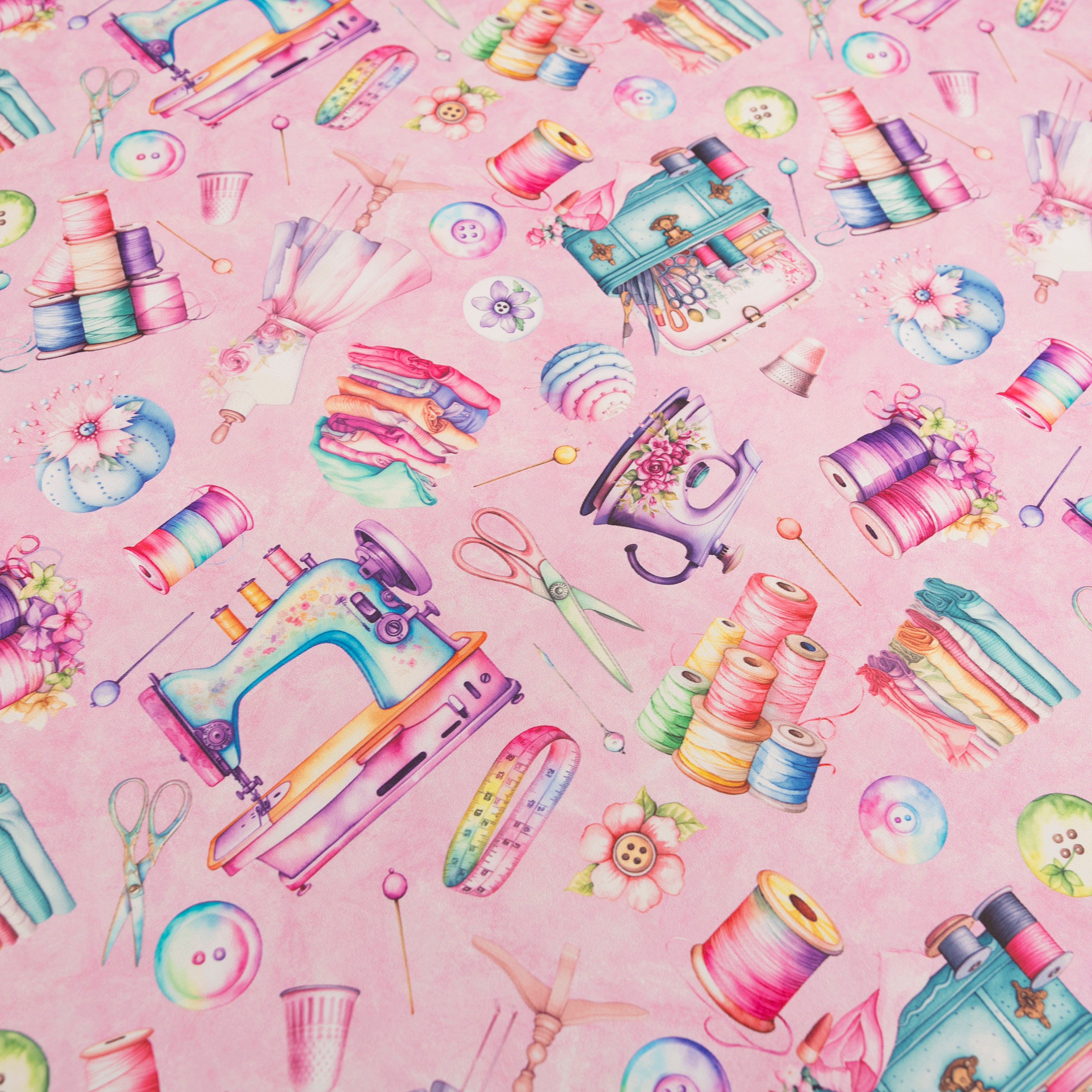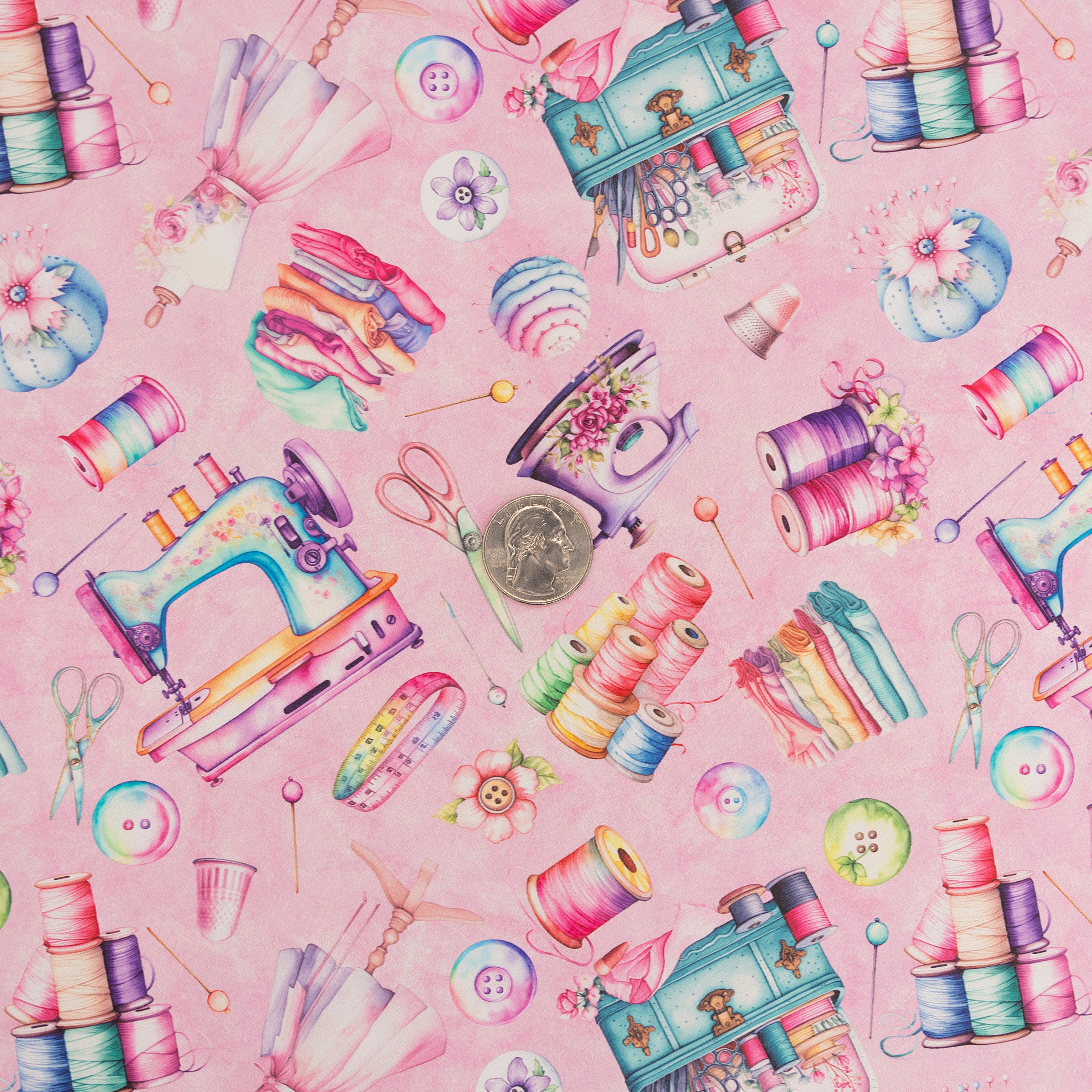 Add a whimsical, vintage charm to your bag-making projects with Threaded Dreams Cracked Texture Vinyl, designed exclusively by Melissa from Sew Yours. Frustrated by the lack of cute sewing-themed materials on the market, Melissa created this one-of-a-kind print to celebrate the art of sewing. This playful design features beautifully illustrated spools of thread, buttons, fabric, scissors, and vintage sewing machines, all set against a delicate pink background.
