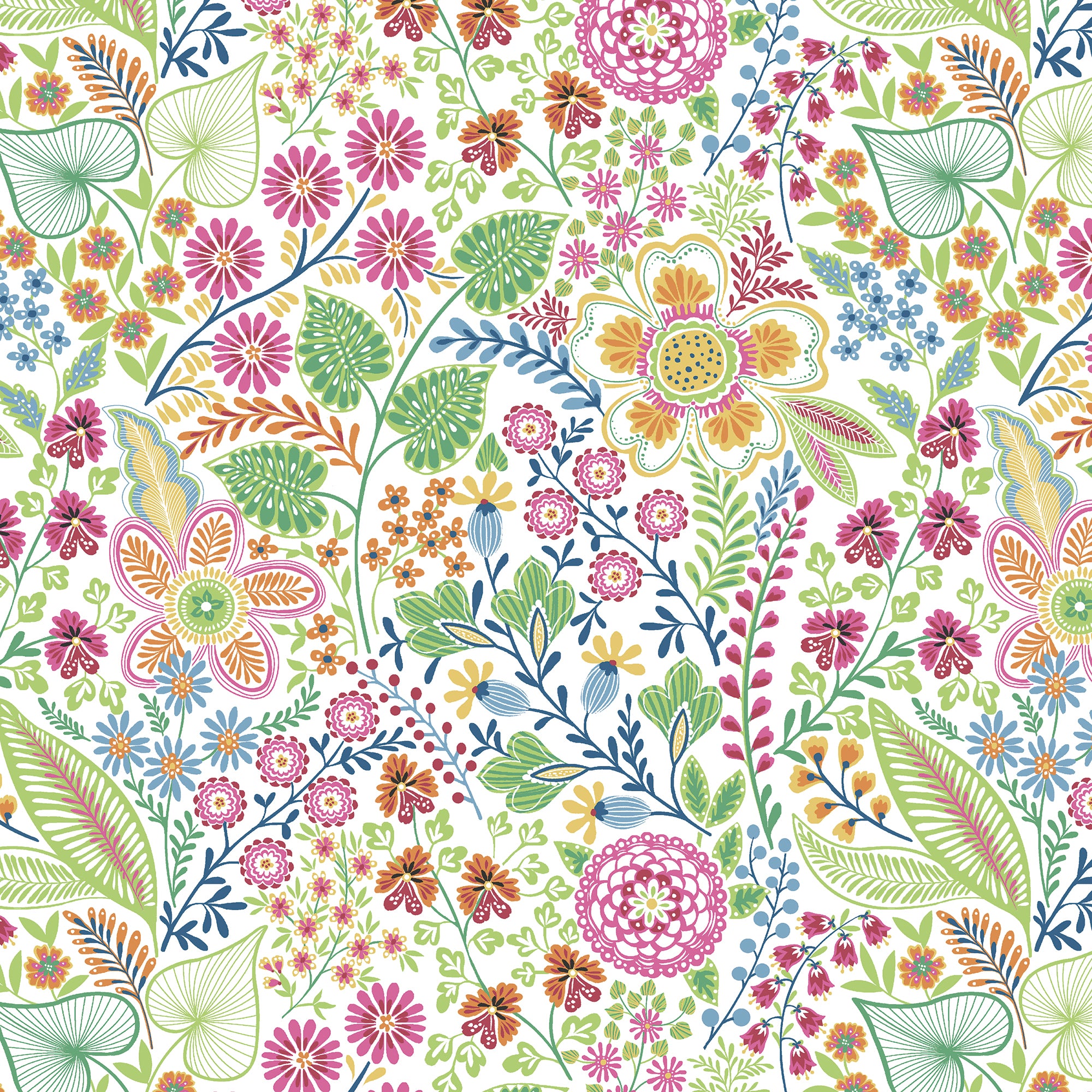 Color It Sunshine is a dynamic floral and plant pattern in shades of pink, green, orange, and yellow against a white backdrop. Be sure to check out the other coordinating prints we carry in the Color It Sunshine collection.