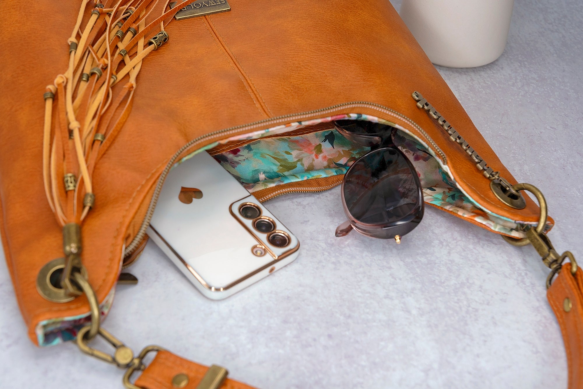 Introducing the Uptown Swing, a modern twist on the classic hobo-style slouchy bag! Inspired by our brand new Pebble Texture Faux Leather it’s designed to drape elegantly over your arm. Inside, you’ll discover a divided slip pocket and a zipper pocket, making it as practical as it is stylish.