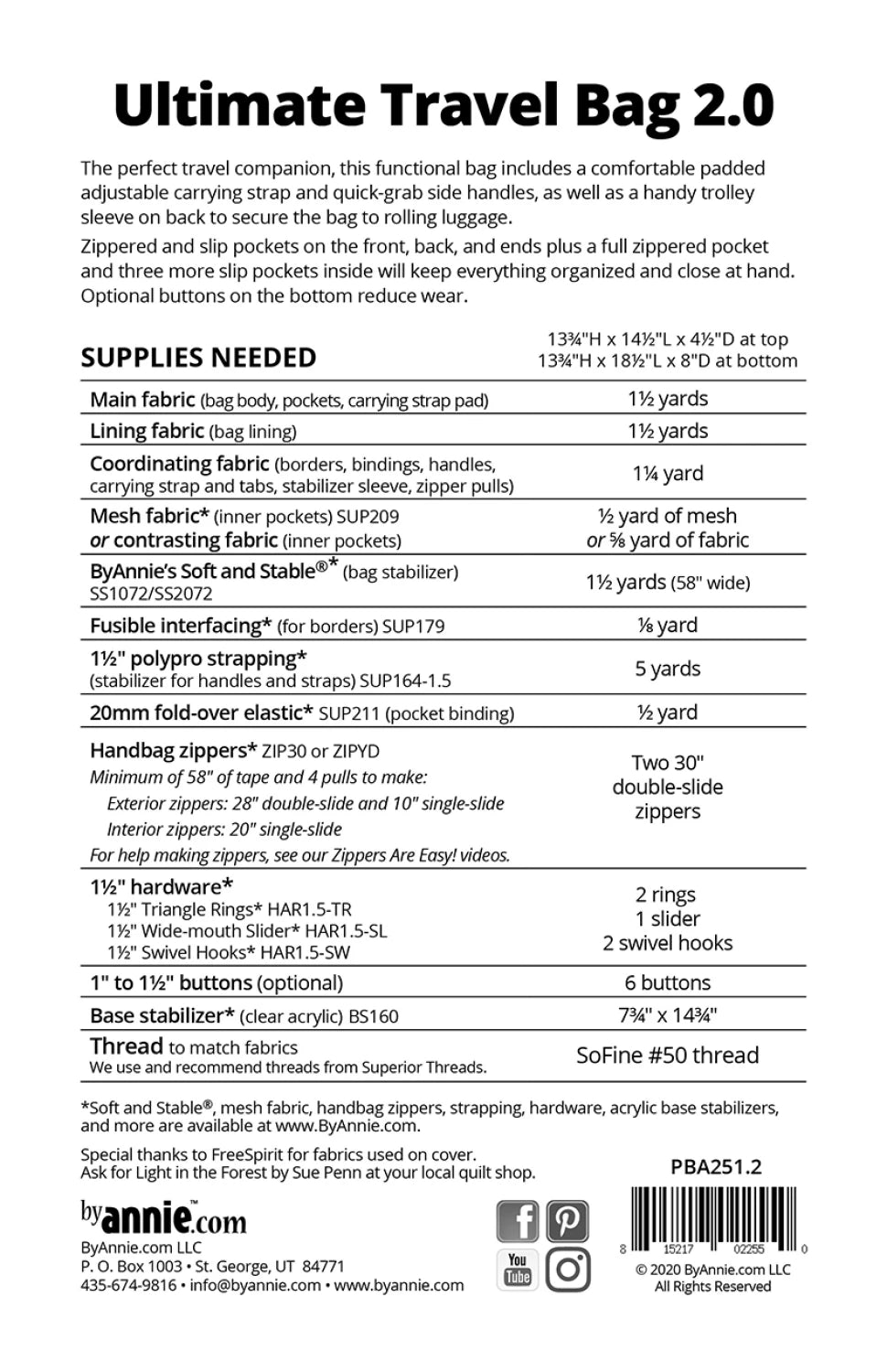The Ultimate Travel 2.0 represents the evolution of functional luggage design, featuring ergonomic elements including a padded adjustable strap and convenient side handles. Its integrated trolley sleeve secures the bag to wheeled luggage, while multiple storage options—zippered and slip pockets on exterior surfaces plus interior compartments—ensure superior organization. With dimensions of 13.75"(H) × 14.5-18.5"(L) × 4.5-8"(D), this 2016 pattern upgrade delivers enhanced instructions, refined techniques, and clearer diagrams. Each pattern includes access to a complementary Add-on Video™ that supplements the written instructions with advanced technique demonstrations for an optimized construction experience.