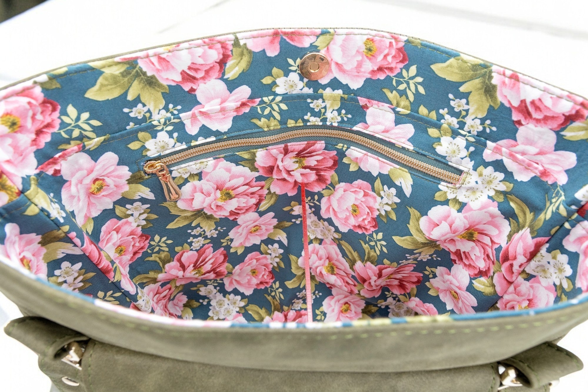 The Kensley Tote is a versatile mid-sized tote bag designed to carry all your daily essentials with ease. Made from durable Army Faux Leather, this bag offers a sleek, modern look perfect for work, errands, or casual outings. Inside, the bold and vibrant floral cotton lining adds a pop of color, blending practicality with style.