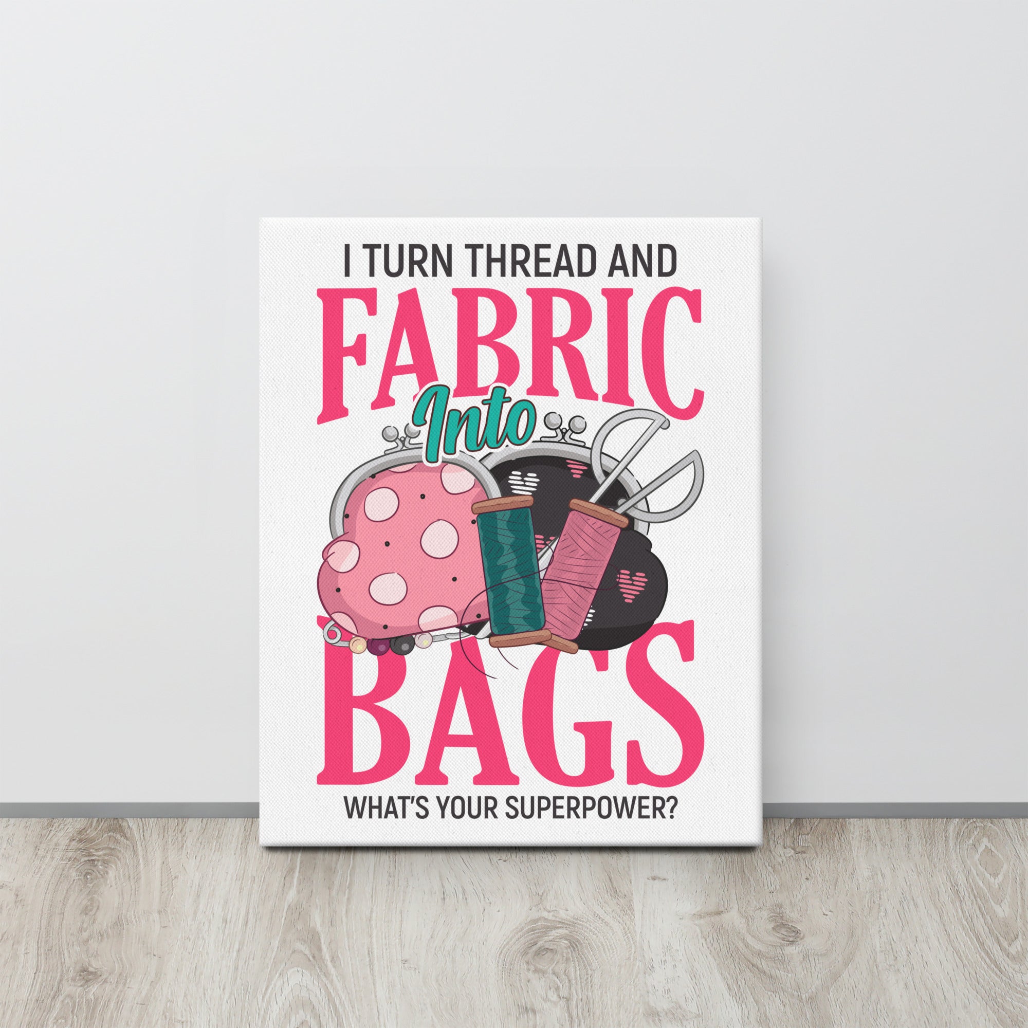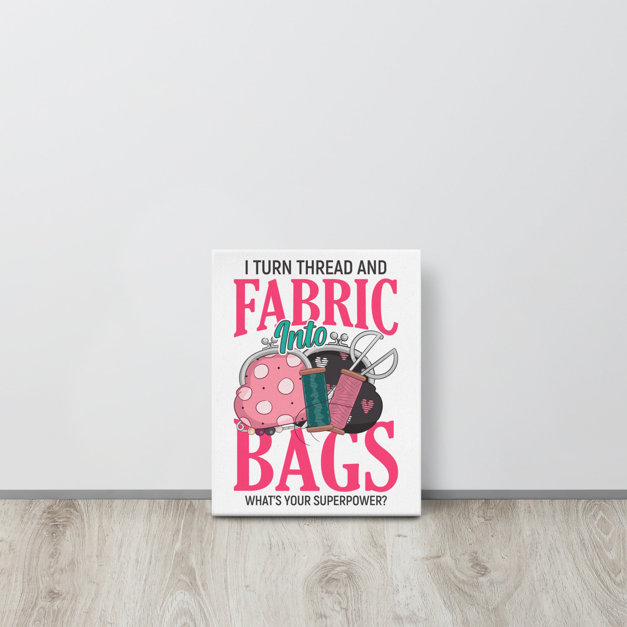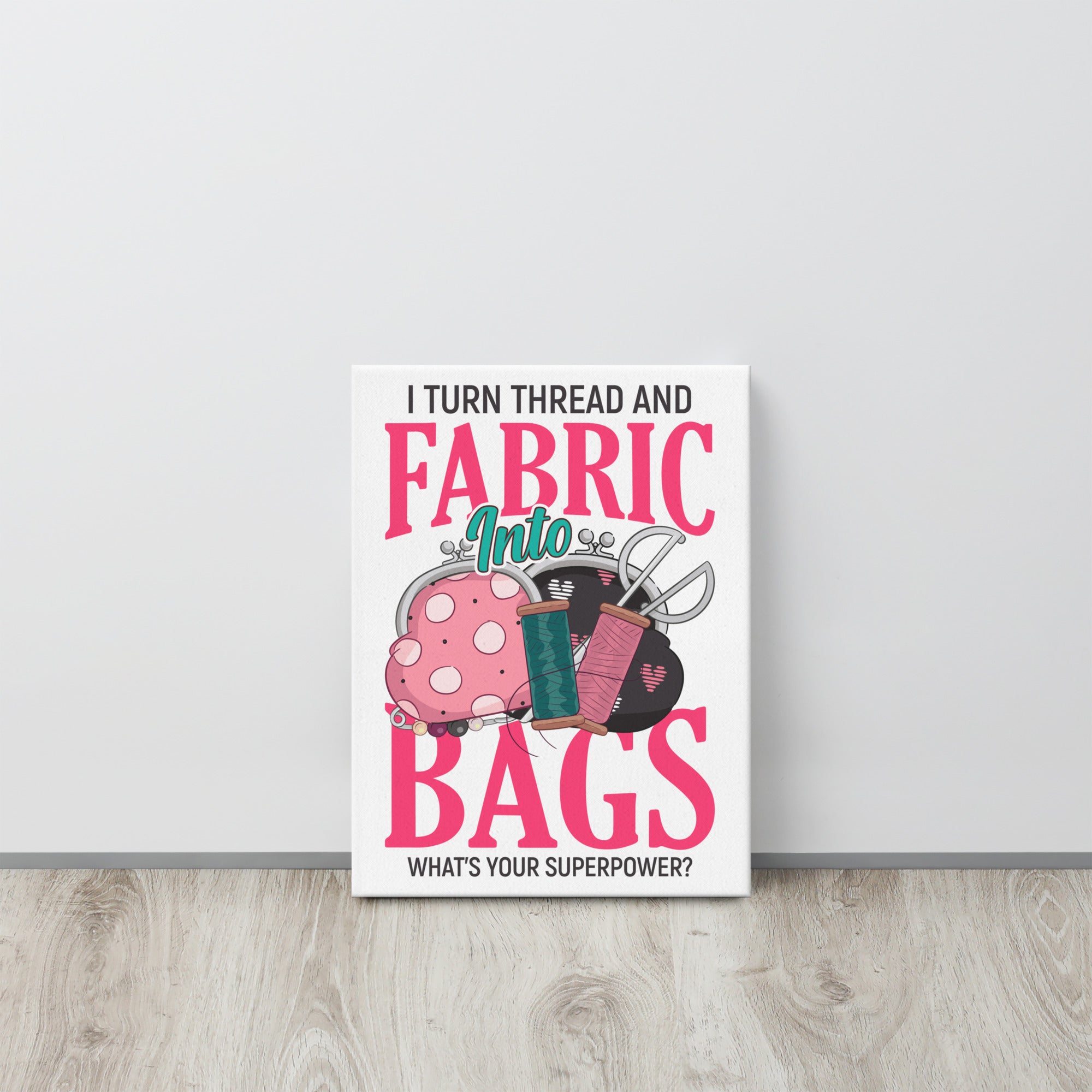 Enhance your sewing area with the I Turn Thread & Fabric into Bags... What's Your Superpower Canvas Print. More than just decor, it's a tribute to your passion and dedication. Perfect for those who live and breathe sewing, this print serves as a daily reminder to follow your heart.