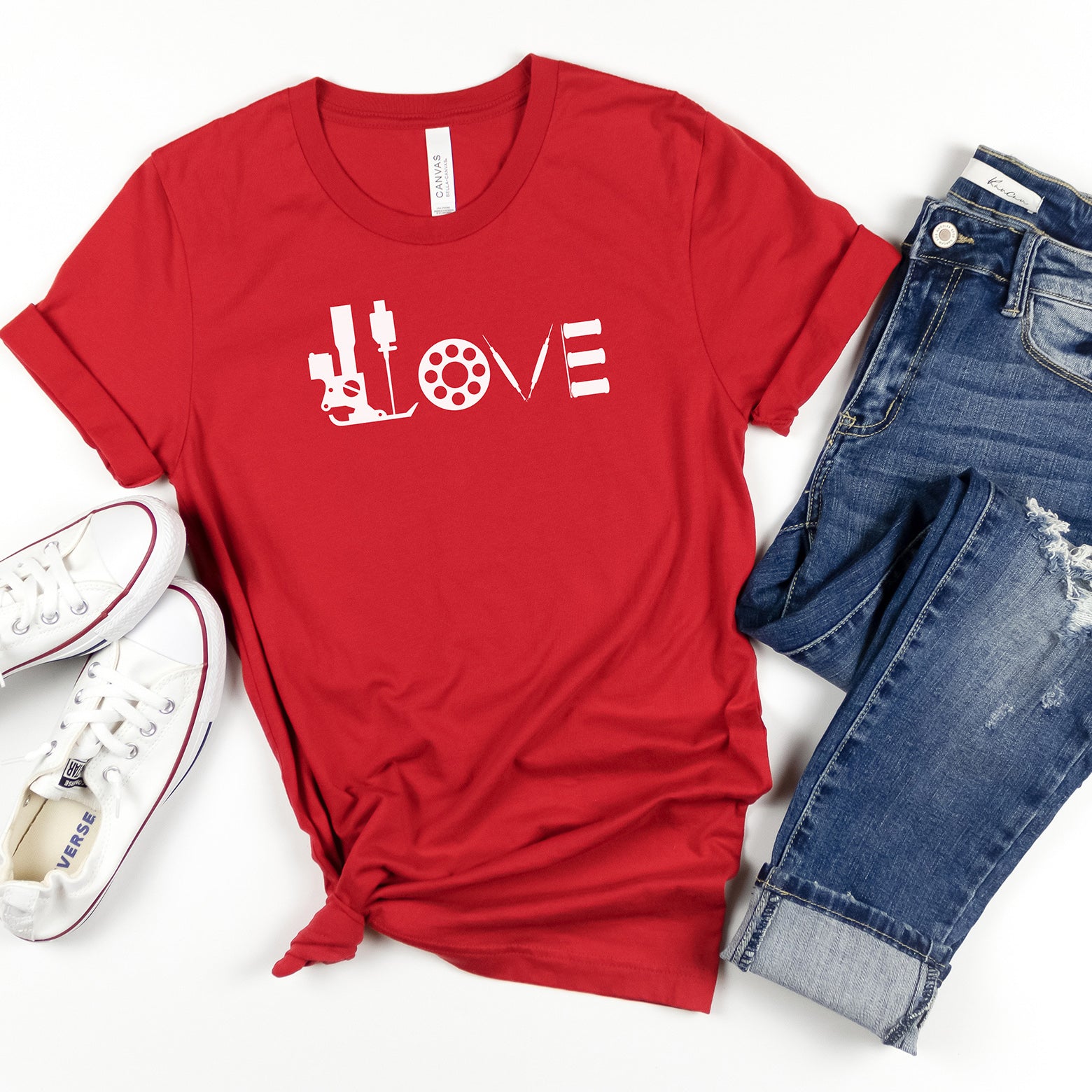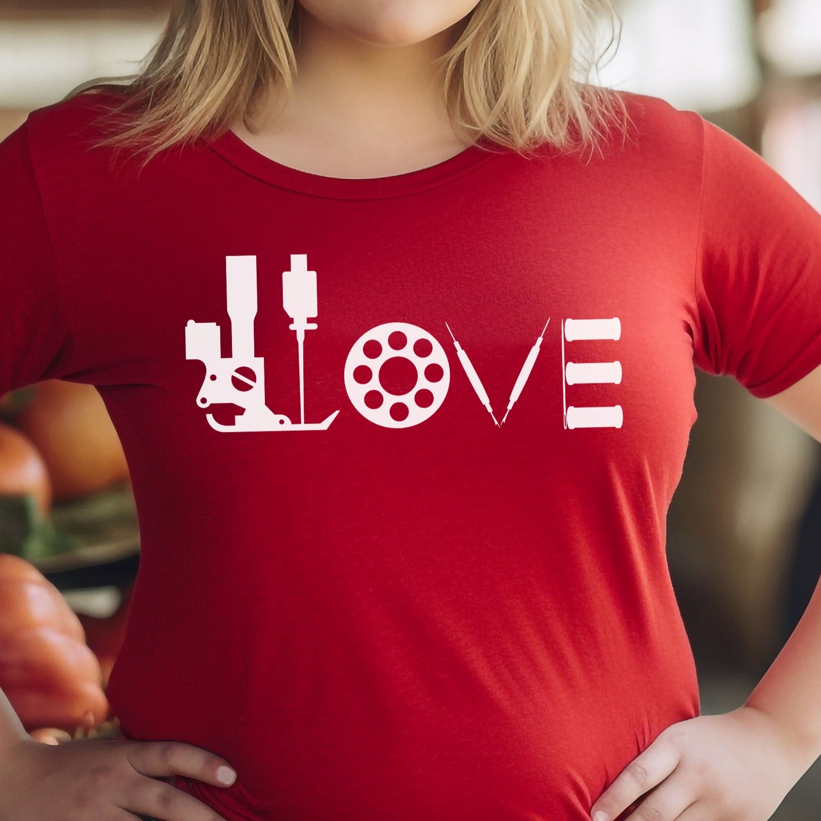 Looking for a way to show off your love of sewing? Look no further than our Love t-shirt! Made to order, this tee is designed with a comfortable fit that's flattering on everyone. Whether you're into quilting, embroidery, or bag making, this shirt is the perfect way to express your passion.