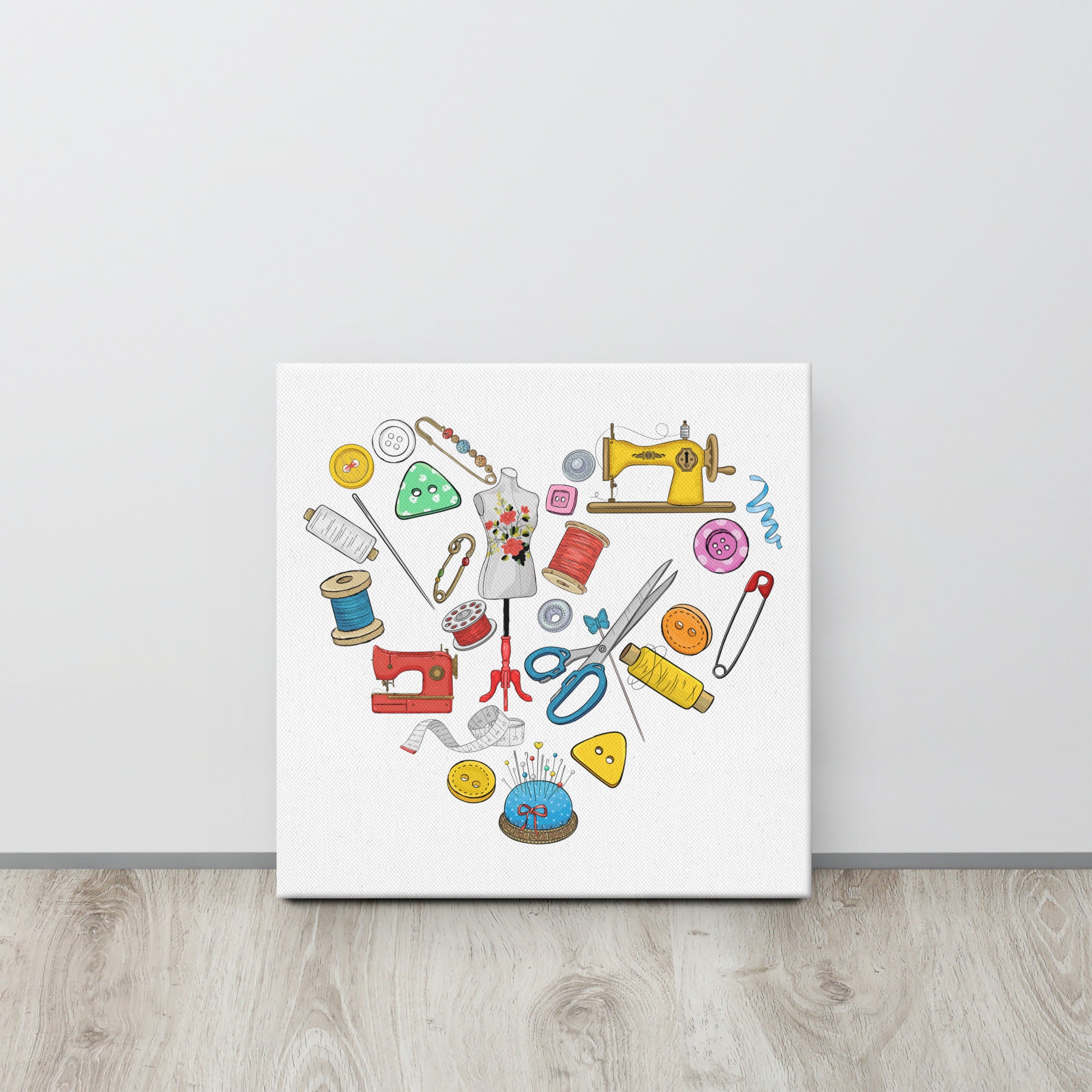 Enhance your sewing area with the Sewing Heart Canvas Print. More than just decor, it's a tribute to your passion and dedication. Perfect for those who live and breathe sewing, this print serves as a daily reminder to follow your heart.