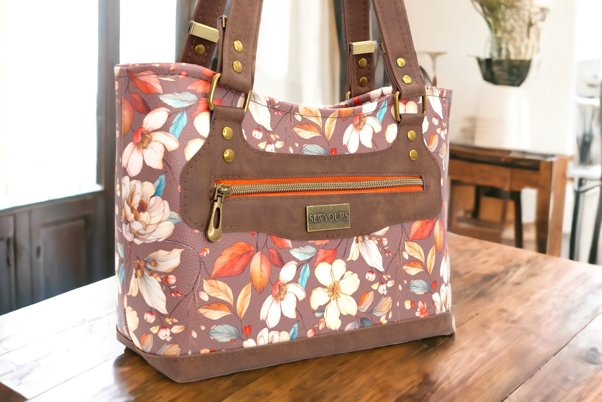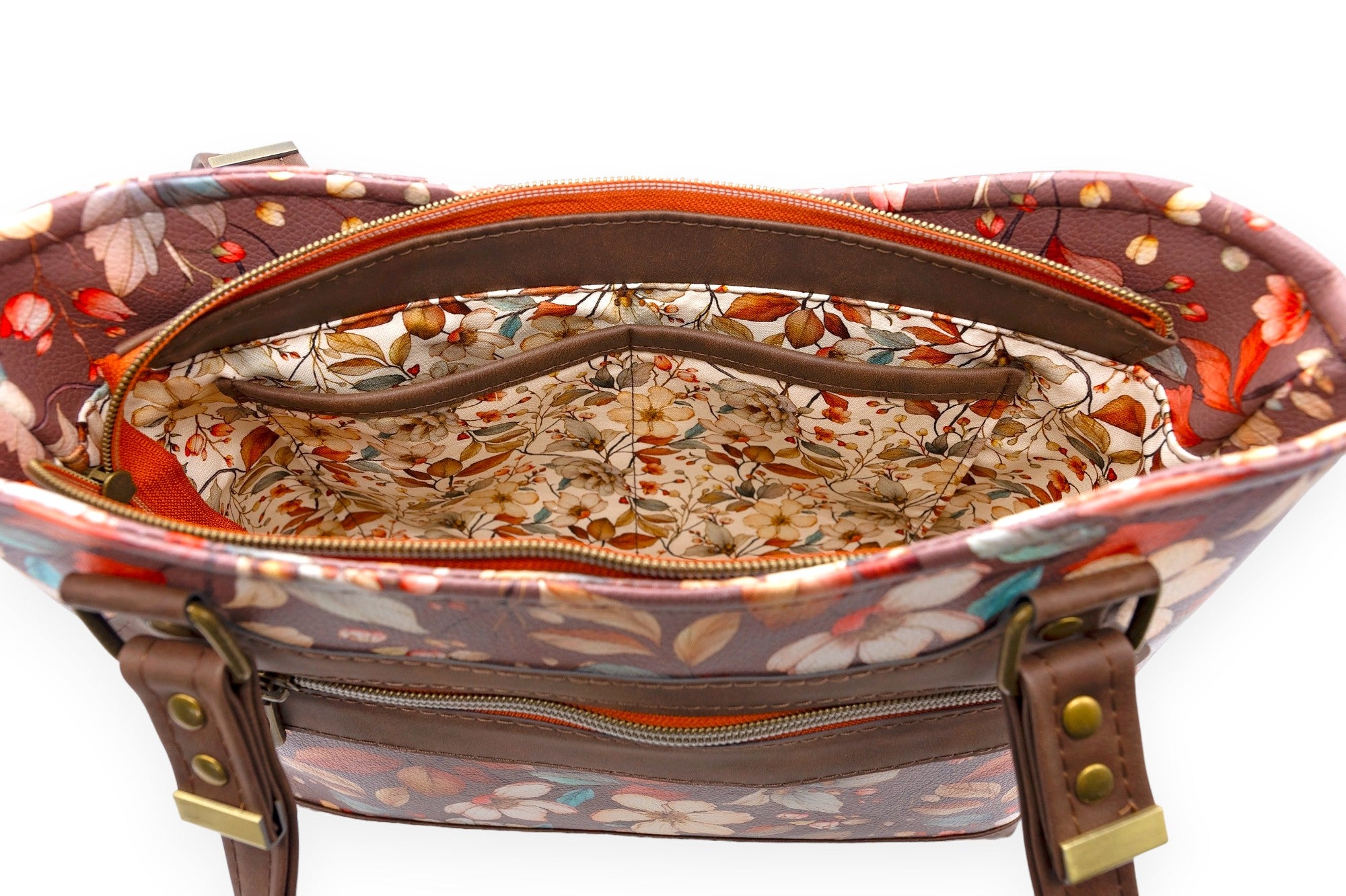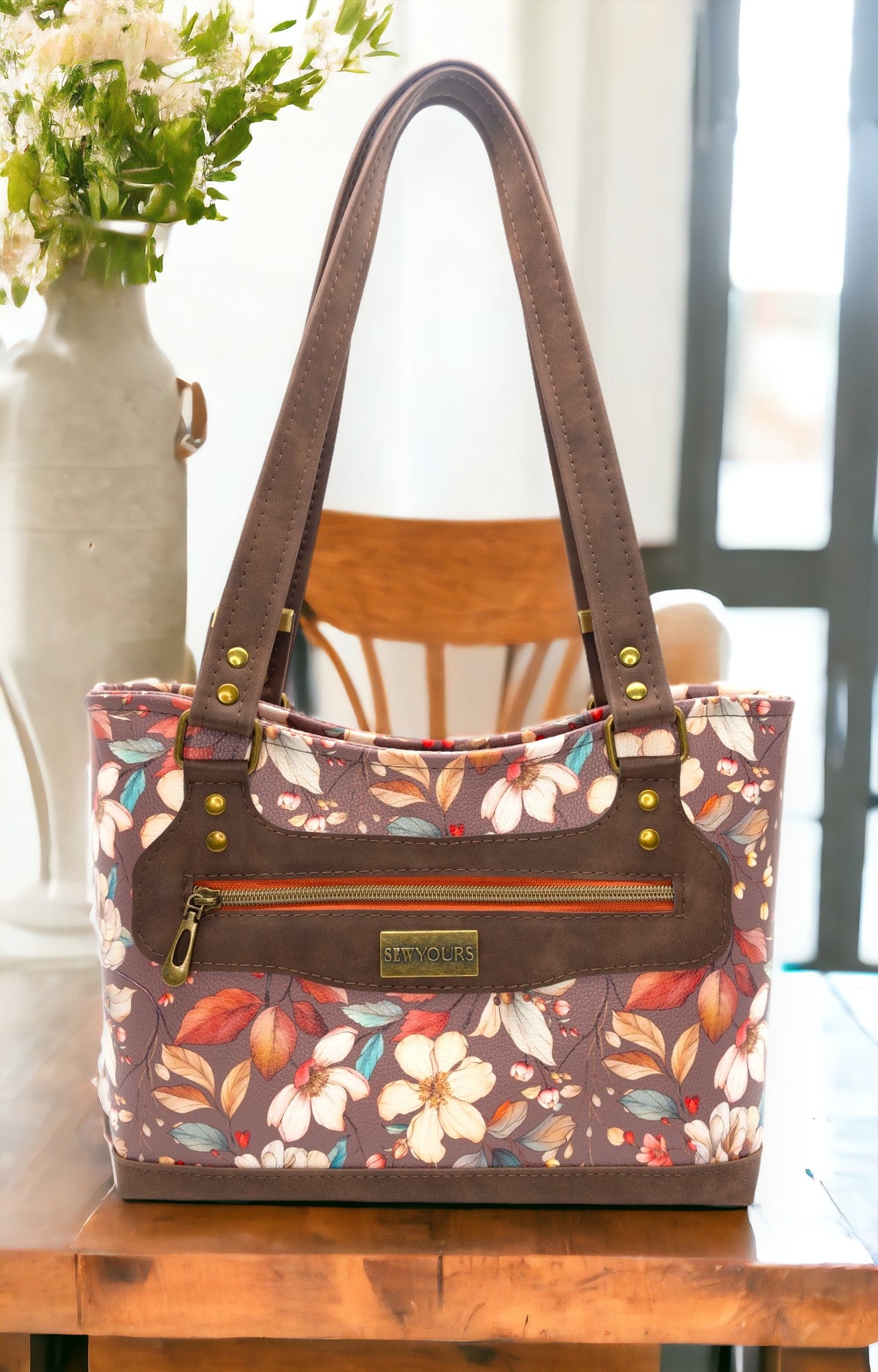 ✂ Cottage Flowers Printed Vinyl with Chocolate Savannah Suede™ on the Exterior