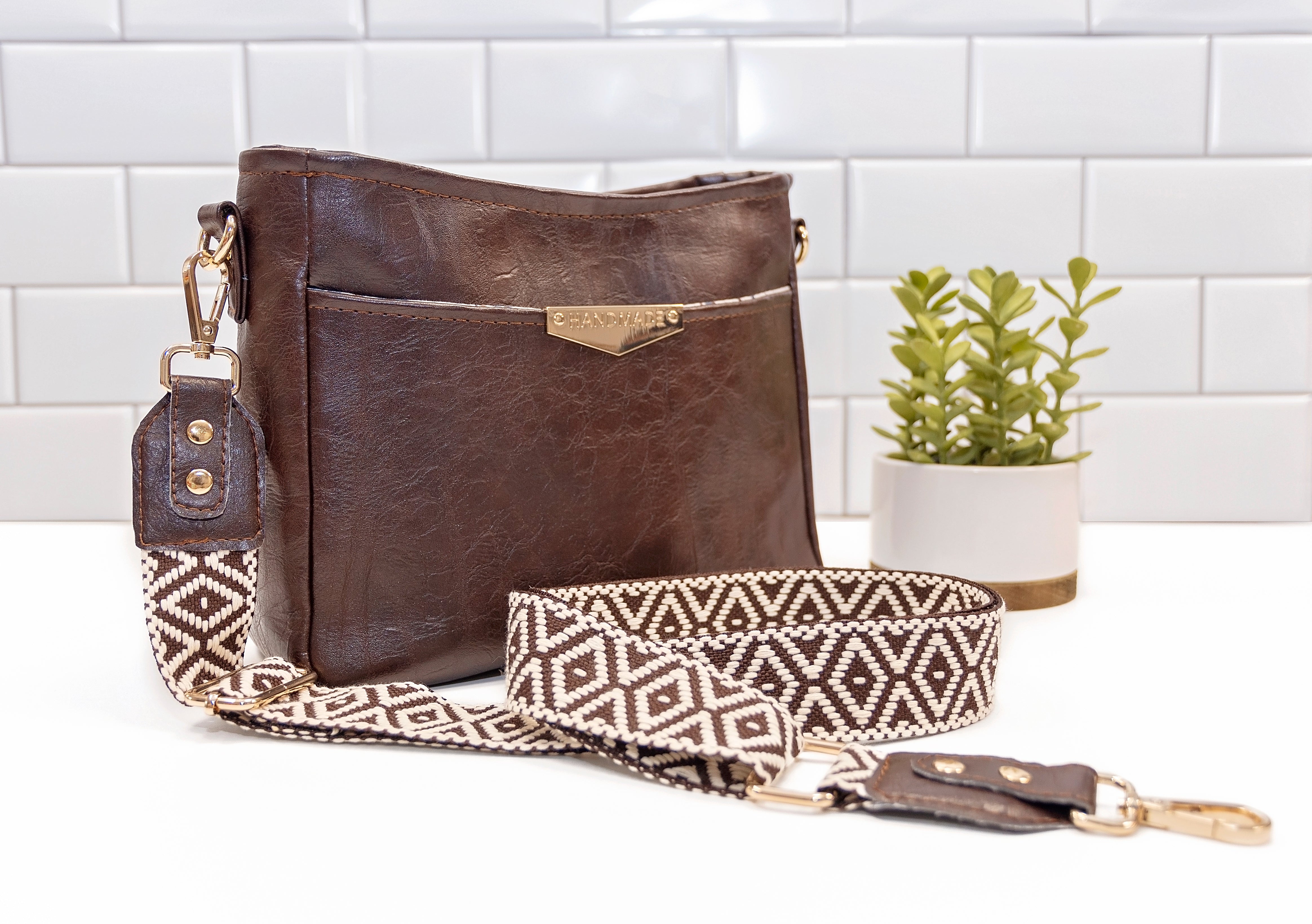 Crossbody Strap with hardware measures approximately 30"-52" depending on the hardware used and how much you fold over the ends.