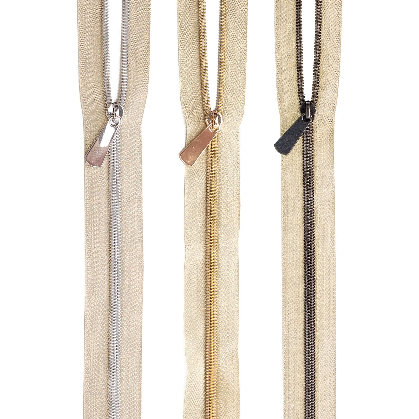 Need a zipper for your project but want to be able to choose the length? We've got you covered! Our Metallic Gold Zipper Tape by the yard is made with nylon coil and is available in 3 different finishes. Our superior quality zipper tape can be cut with scissors. Zipper tape available in 1-, 3 yard increments. Please note all yardage is precut.