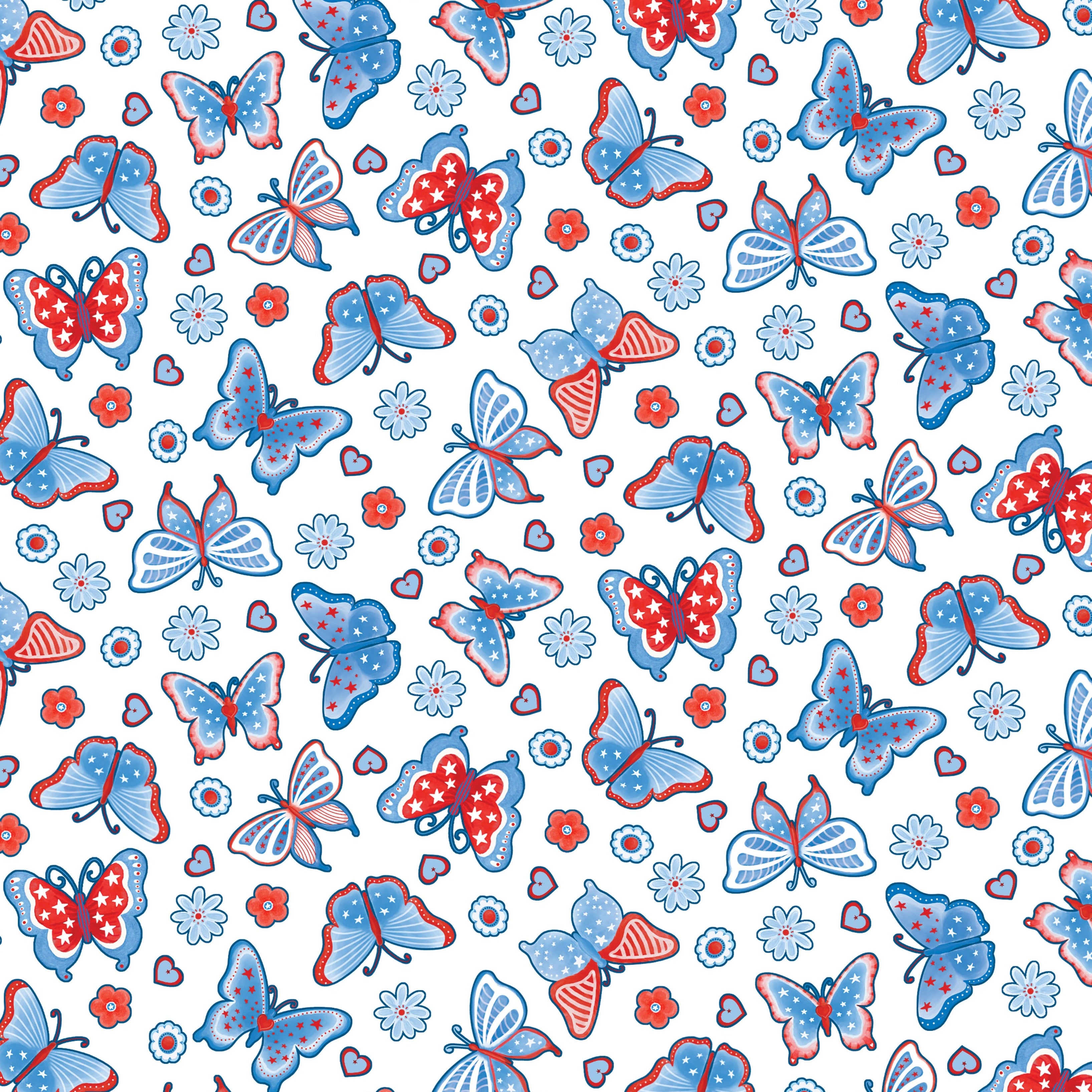 Explore the beauty of Americana butterflies with this stunning print in red, white, and blue. Perfect for any crafting project, this fabric is sold by the yard and is sure to add a touch of patriotic charm to your creations.