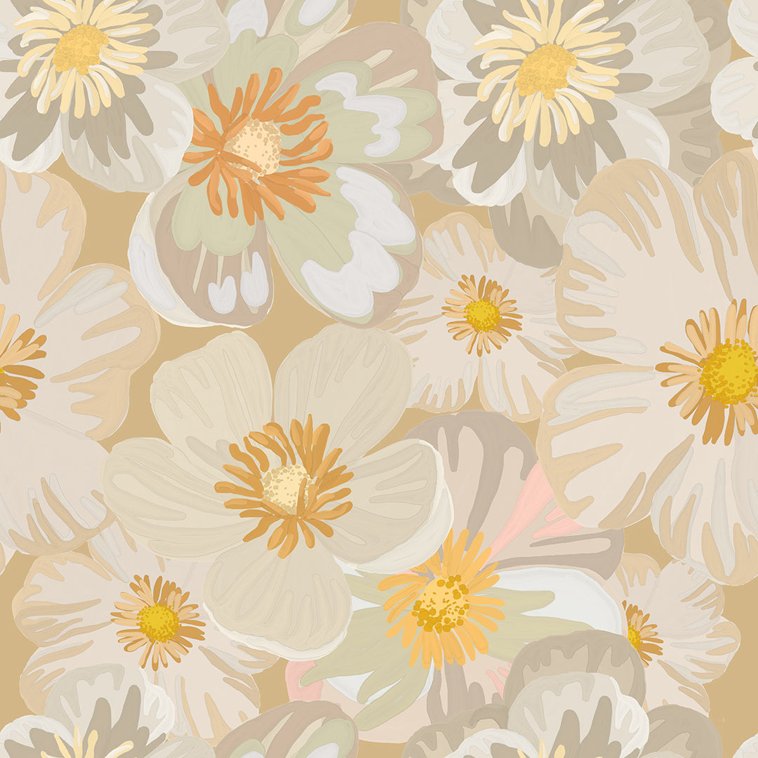 Anemone Beige Yellow – 100% Quilting Cotton Fabric by the Yard