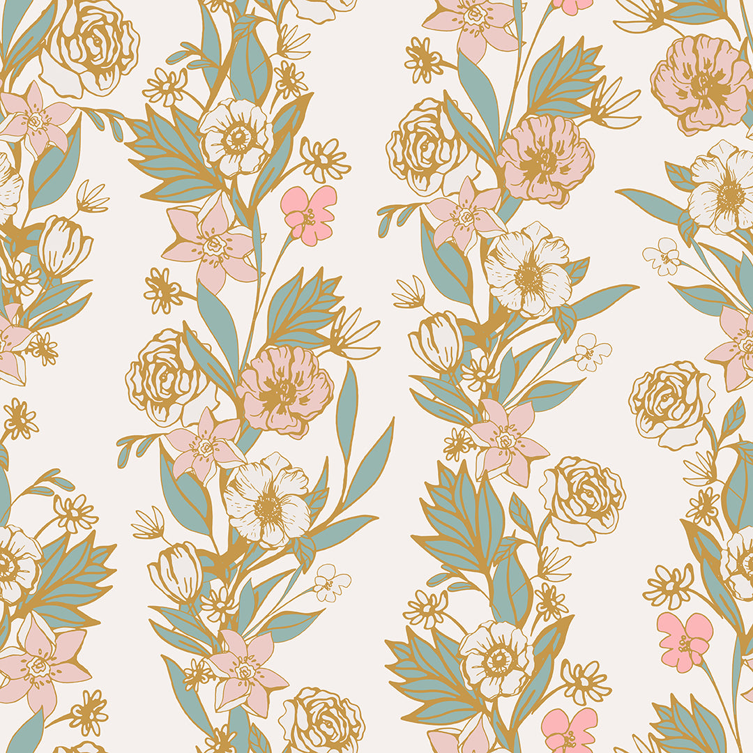 Baby Pink Floral Vine – 100% Quilting Cotton Fabric by the Yard