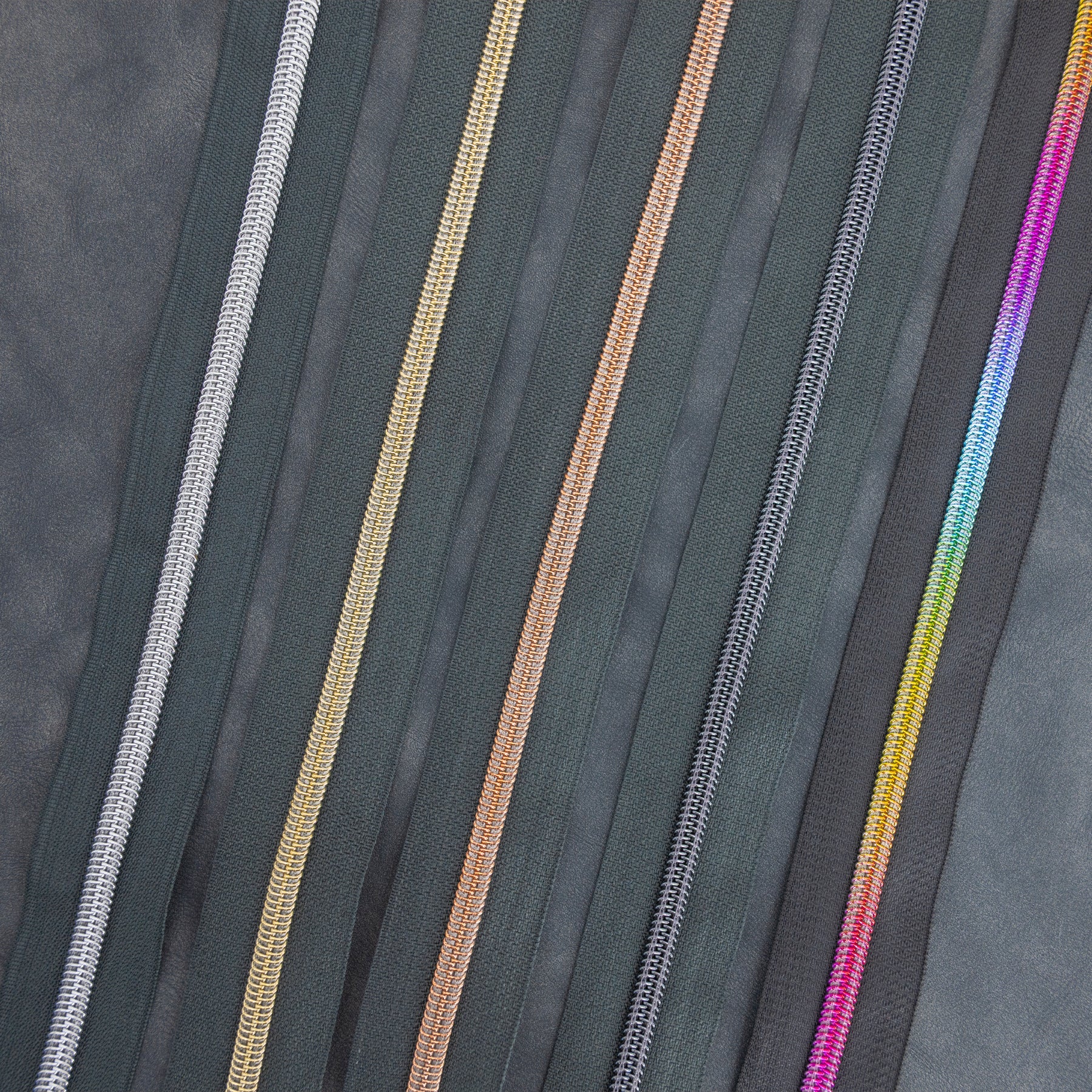 Note: The the Rainbow Zipper tape color is a true black while the others are a soft black as pictured.