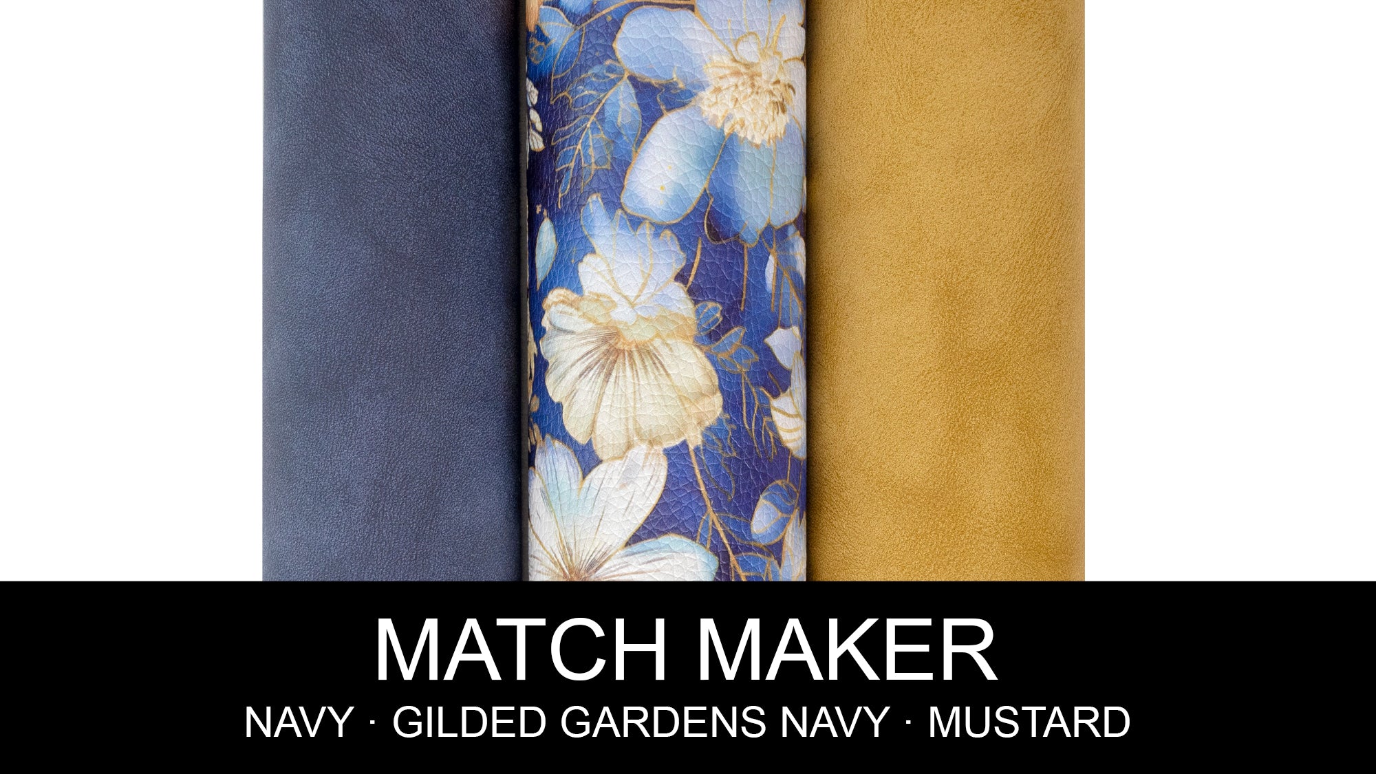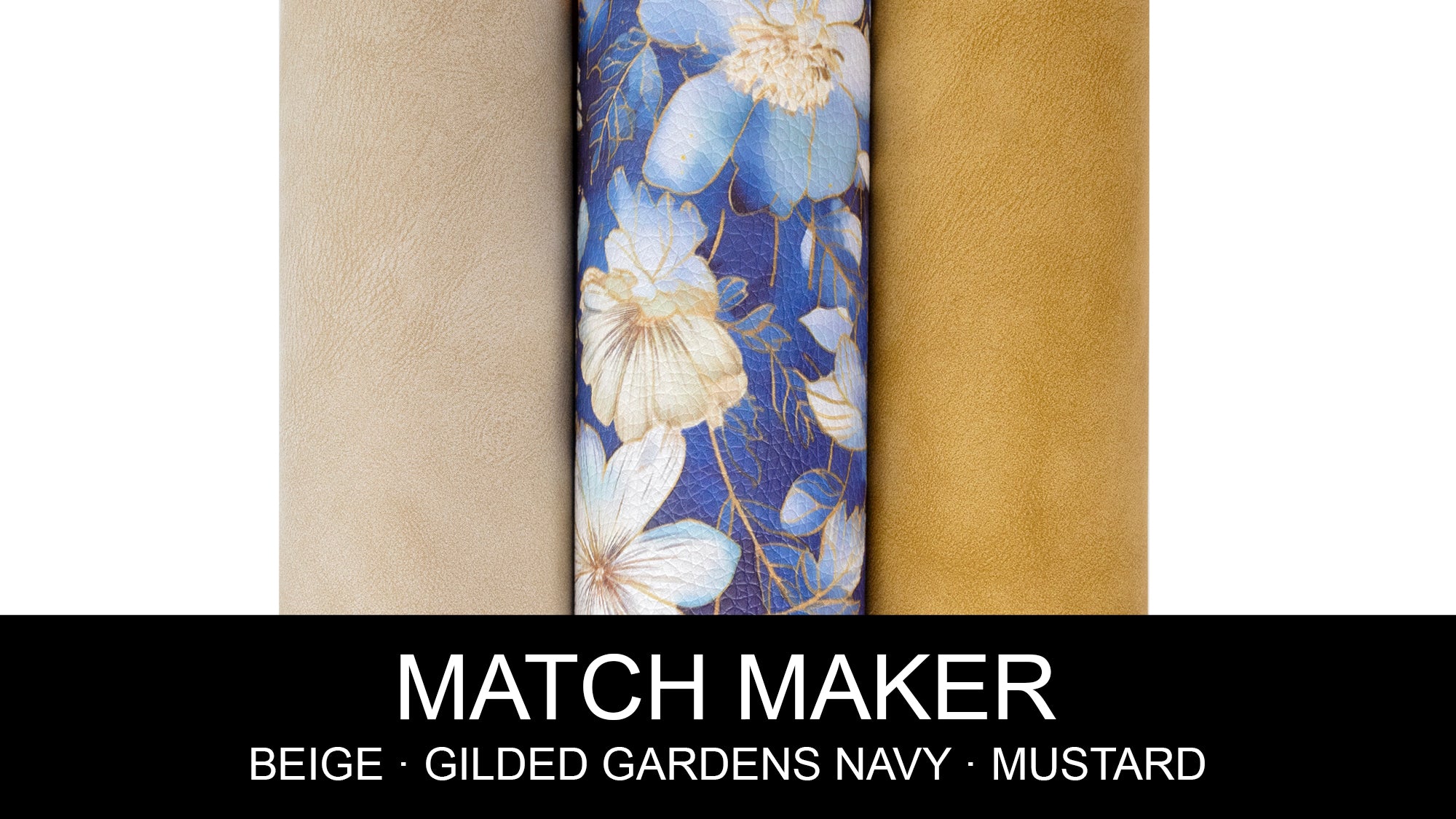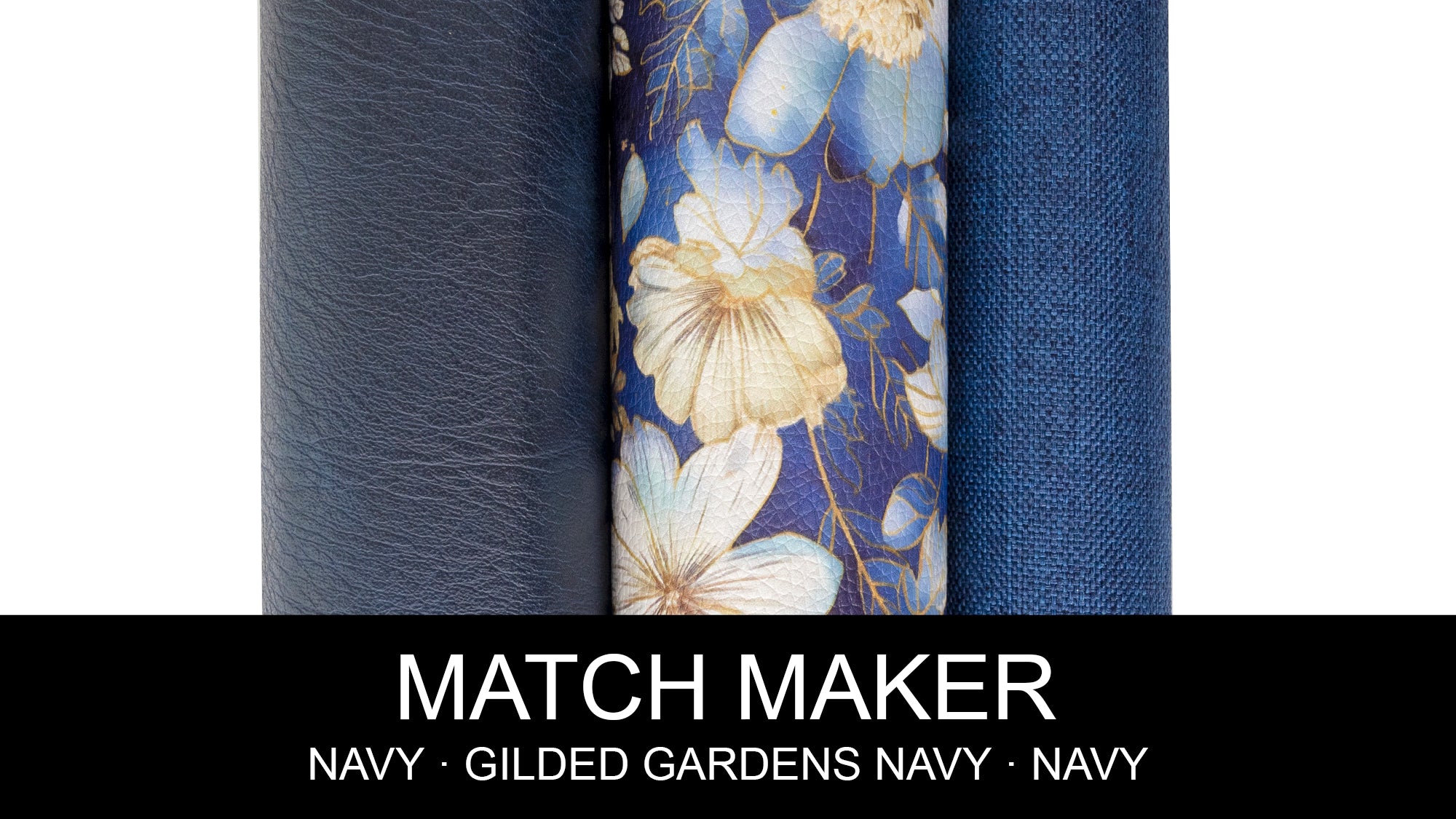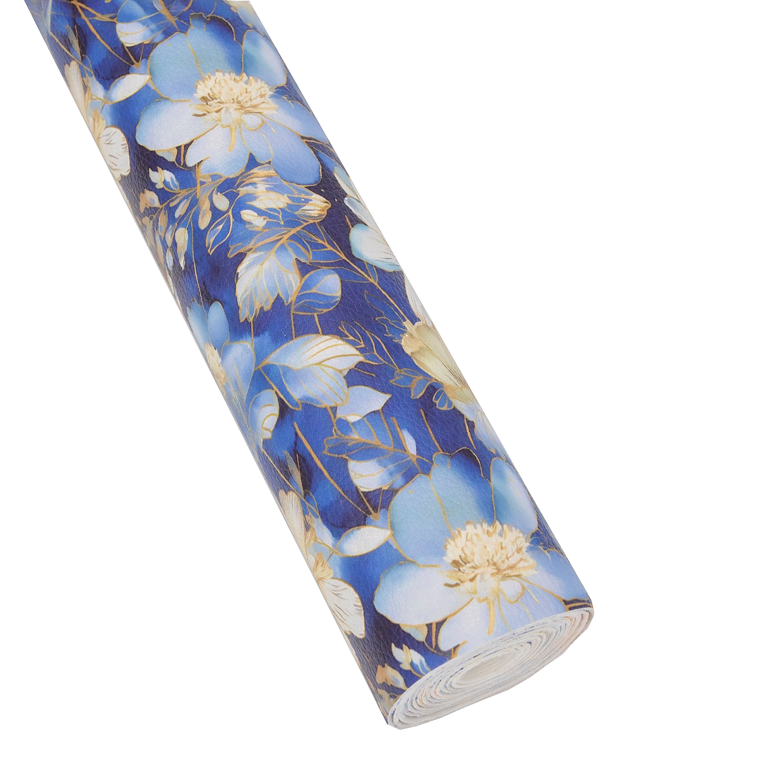 Elevate your handmade creations with the enchanting elegance of our Dusky Dreams printed vinyl fabric. This 18" x 53" roll features a stunning floral design with soft blooms in shades of dusty blue, ivory, and peach, all set against a deep, dusky navy background. Delicate gold detailing enhances the pattern, giving it a refined, timeless look that adds a touch of luxury to handbags, wallets, and accessories.