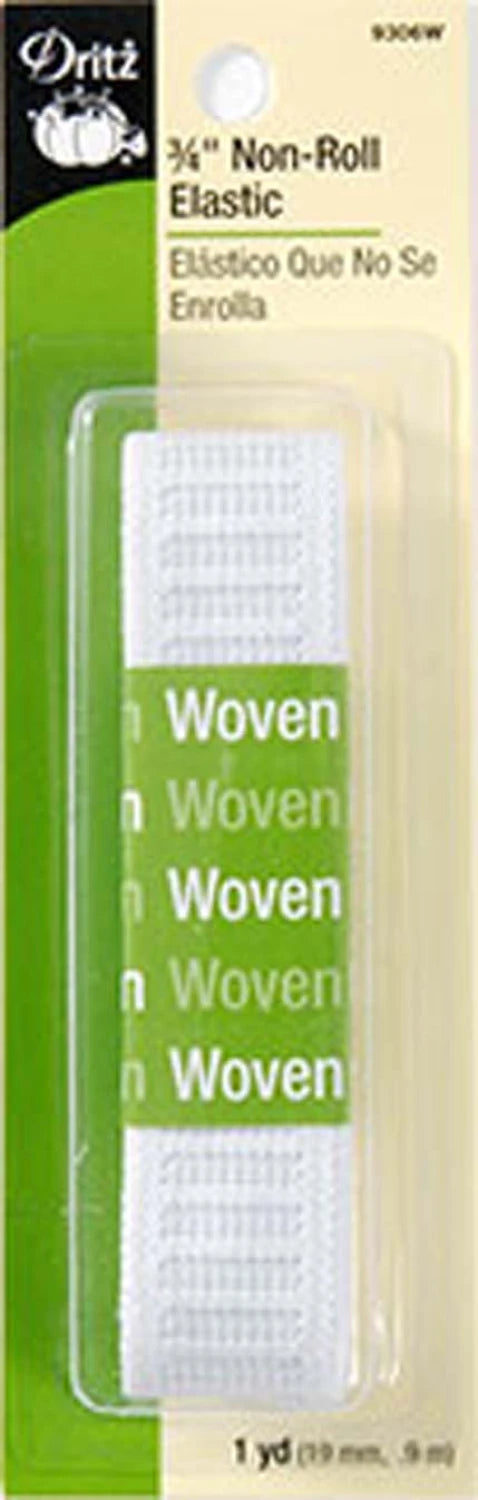 Dritz White Non-Roll Woven Elastic is designed to resist rolling and twisting, making it ideal for waistbands, sleeves, and leg bands. Strong yet flexible, this 3/4 inch elastic works best with light to medium-weight fabrics such as shorts, skirts, pants, and blouses. It stays flat and comfortable in casings, helping garments keep their shape through regular wear. Machine washable and dryable, this elastic withstands heat up to 200°F, ensuring long-lasting performance in your sewing projects.
